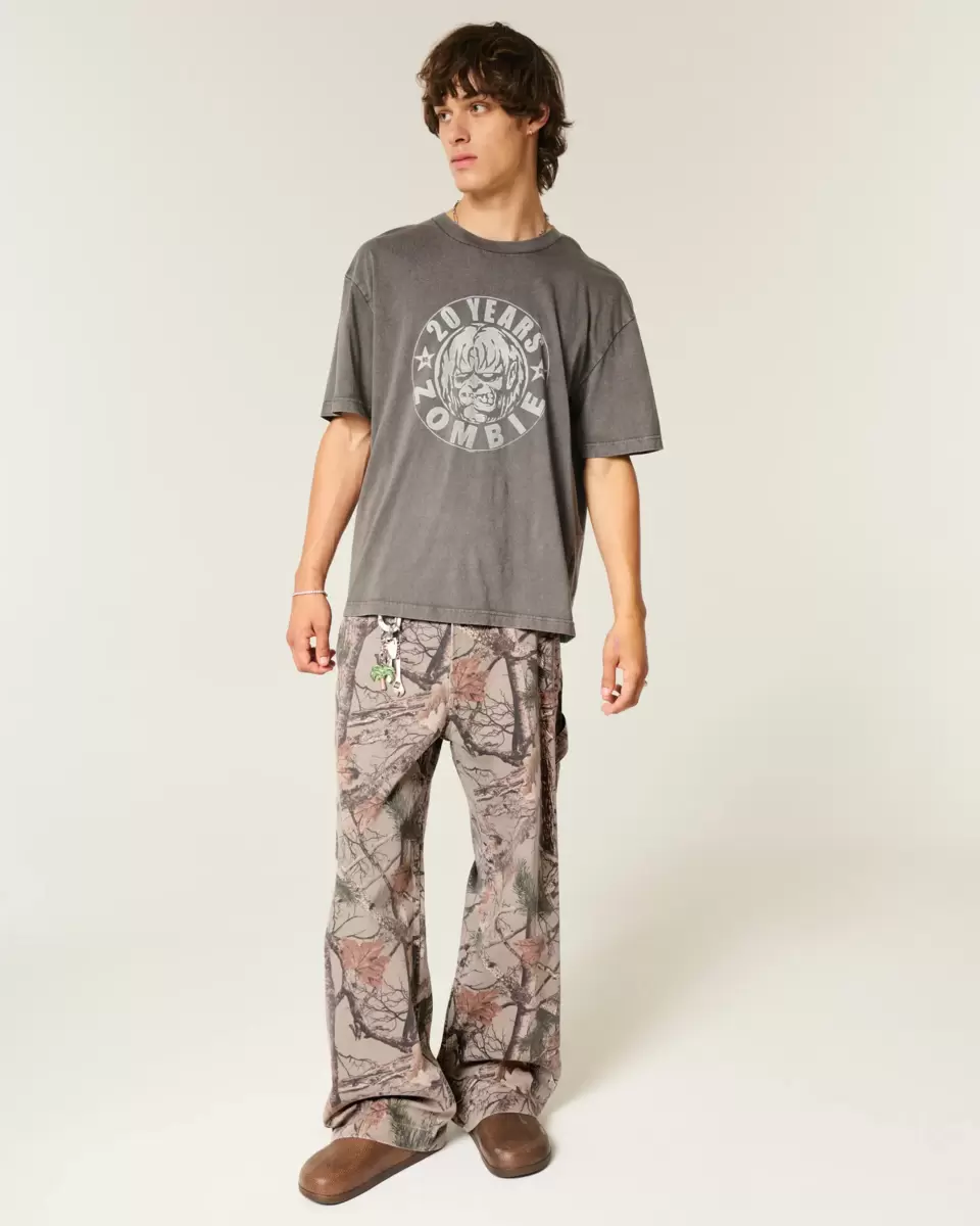 Comfortable denim jeans featuring an all-over camo pattern, designed with a super baggy leg, left painter loop and extra pockets. Imported.