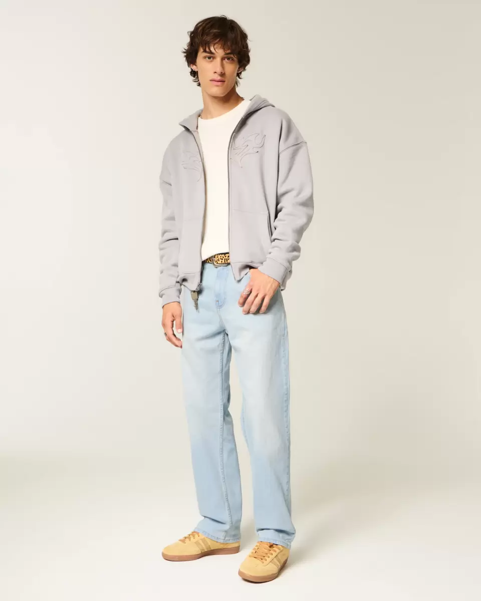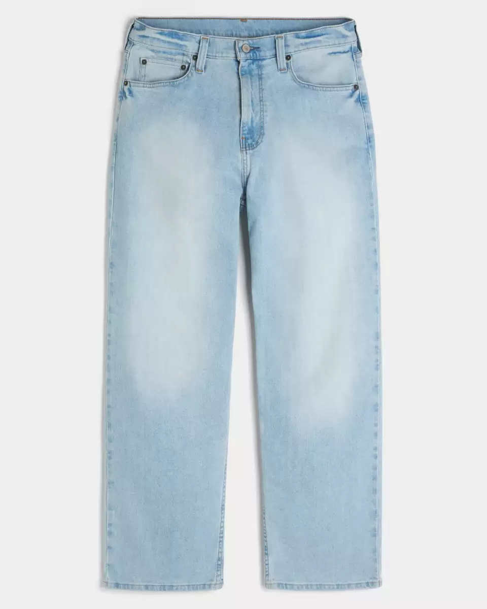 Comfortable denim jeans in a light wash, designed with a baggy leg. Fading. Imported.