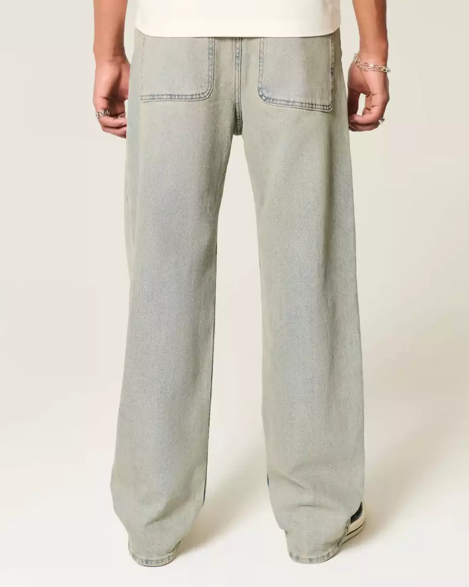 Comfortable denim jeans in a light wash, designed with a baggy leg. Fading, whiskering.