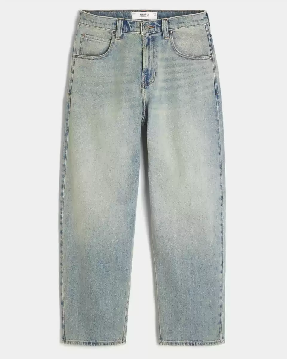 Classic denim skater jeans in a light wash, designed with a baggy leg. Fading, whiskering, embroidered dice graphic at back pocket. Imported.