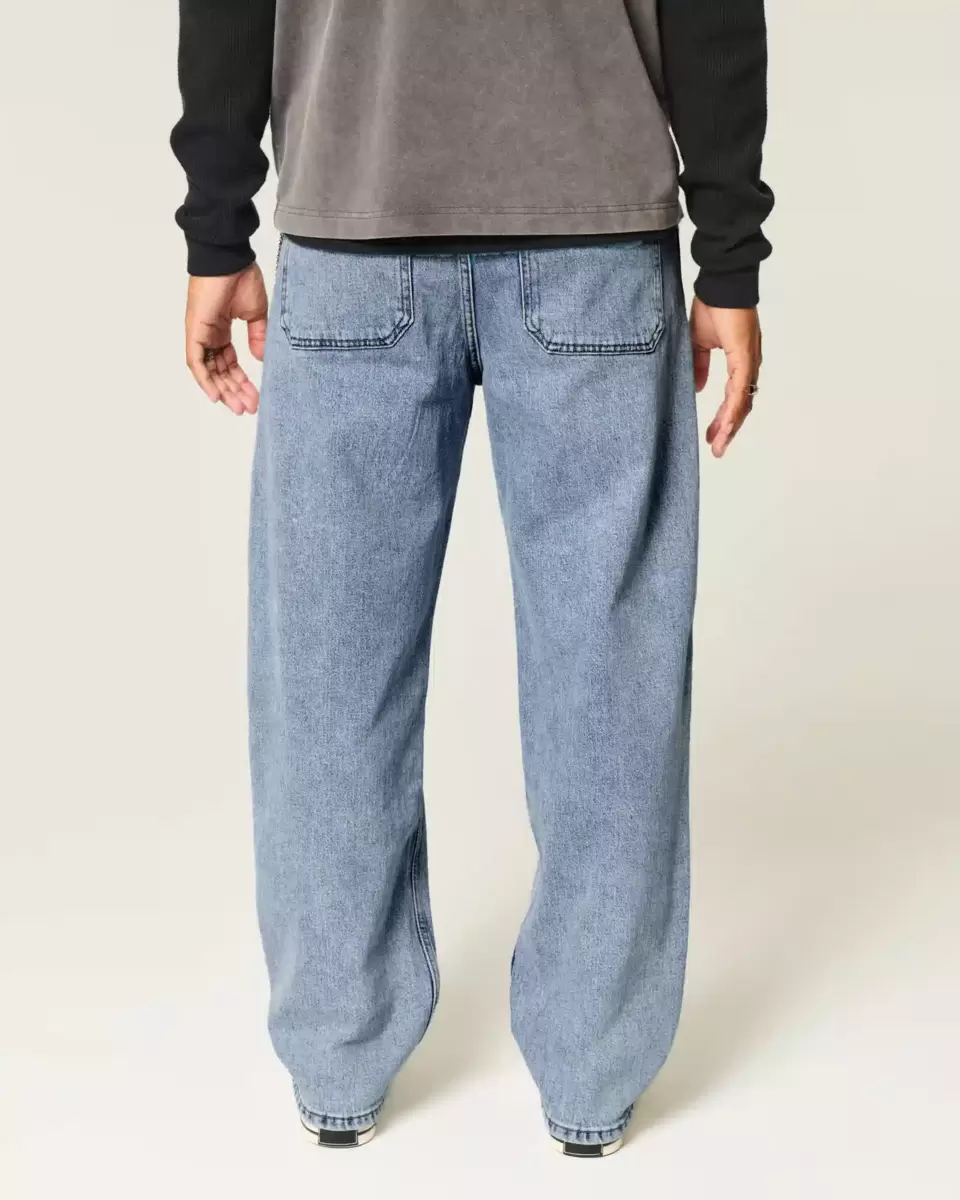 Comfortable denim skater jeans designed with a baggy leg. Medium wash. Imported.