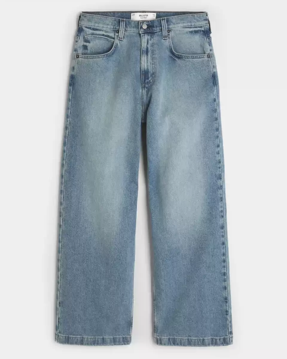 Comfortable denim jeans in a medium wash, designed with a super baggy leg and classic 5-pocket styling. Fading.