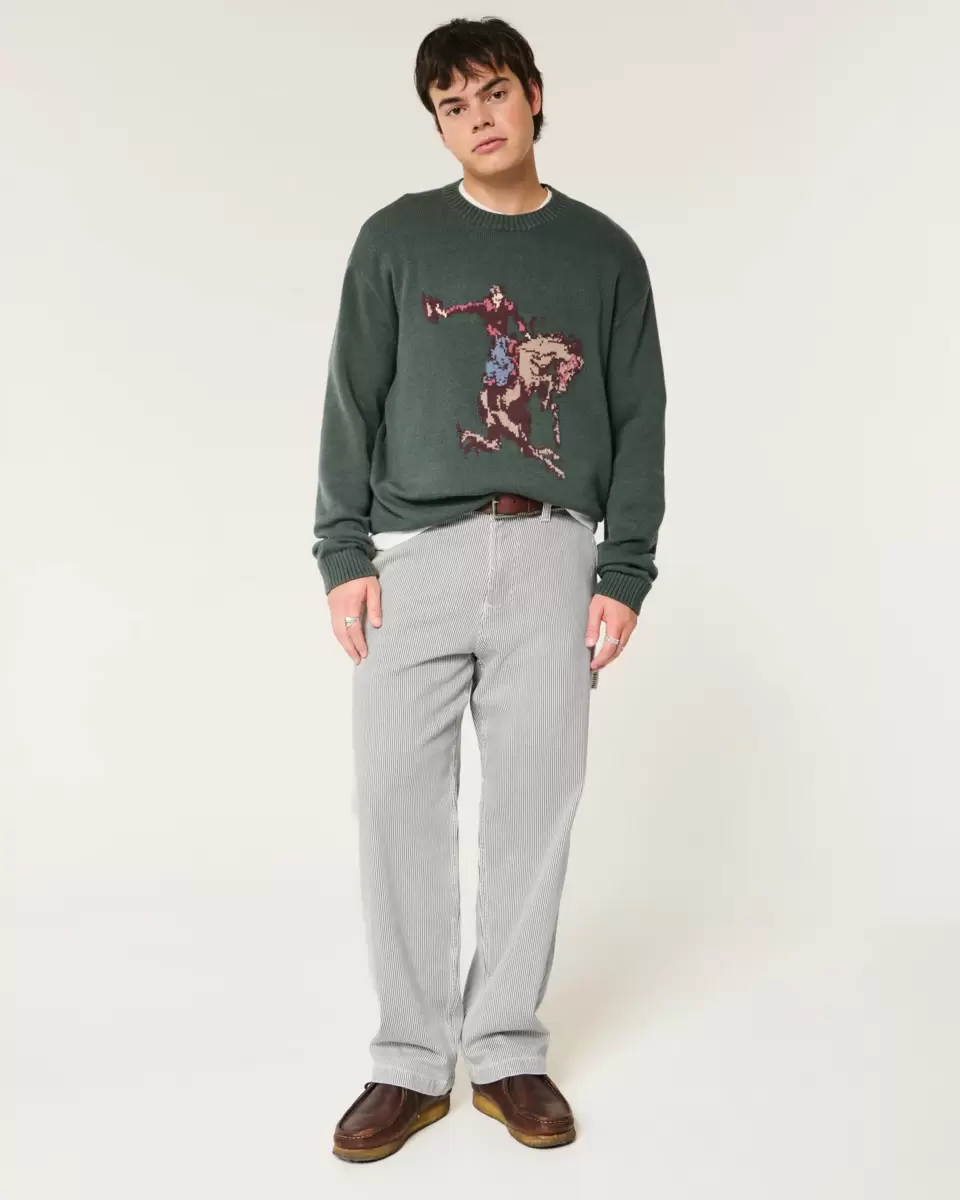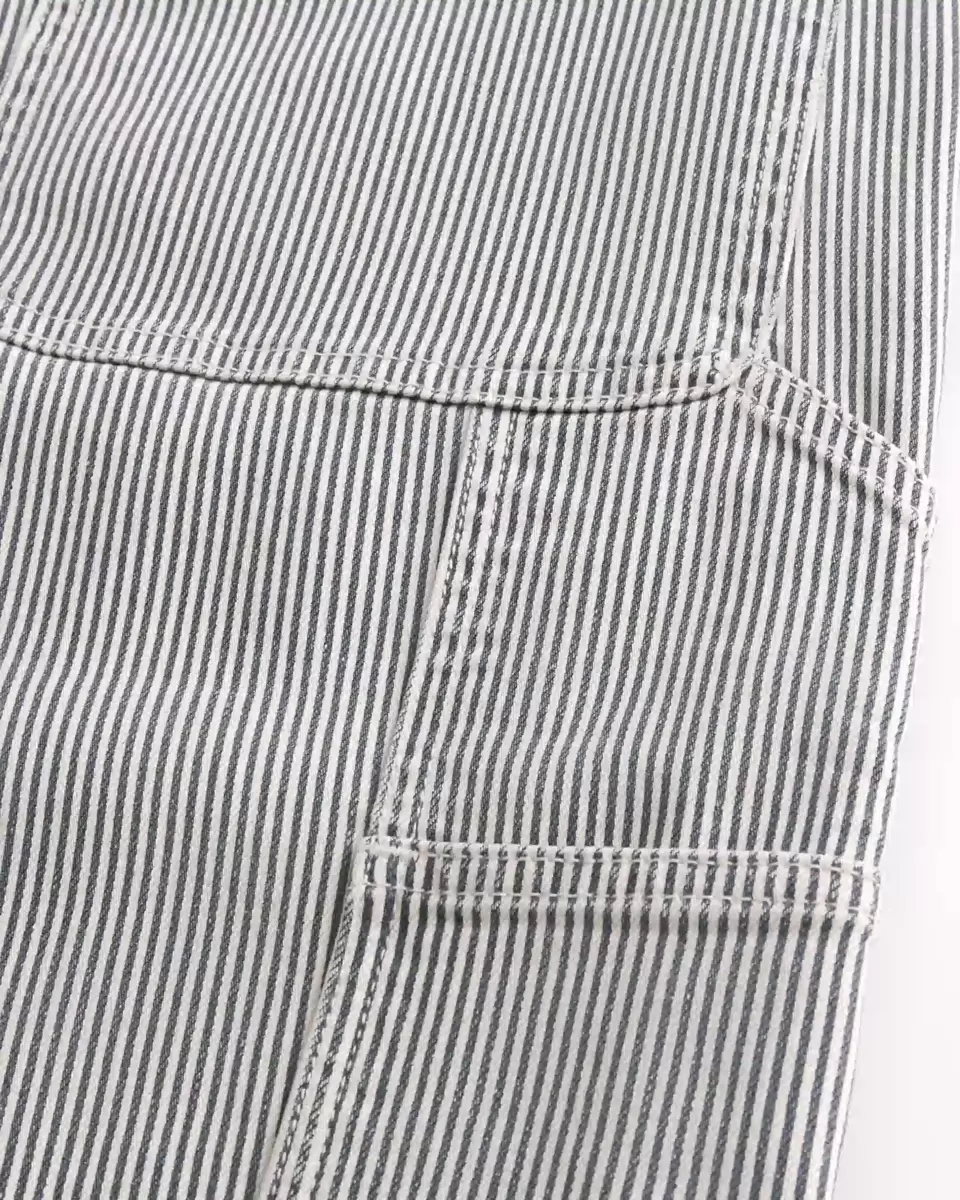 Ultra-comfortable painter-style denim jeans designed with a baggy leg. Classic railroad stripe pattern, left loop detail, extra pockets. Imported.