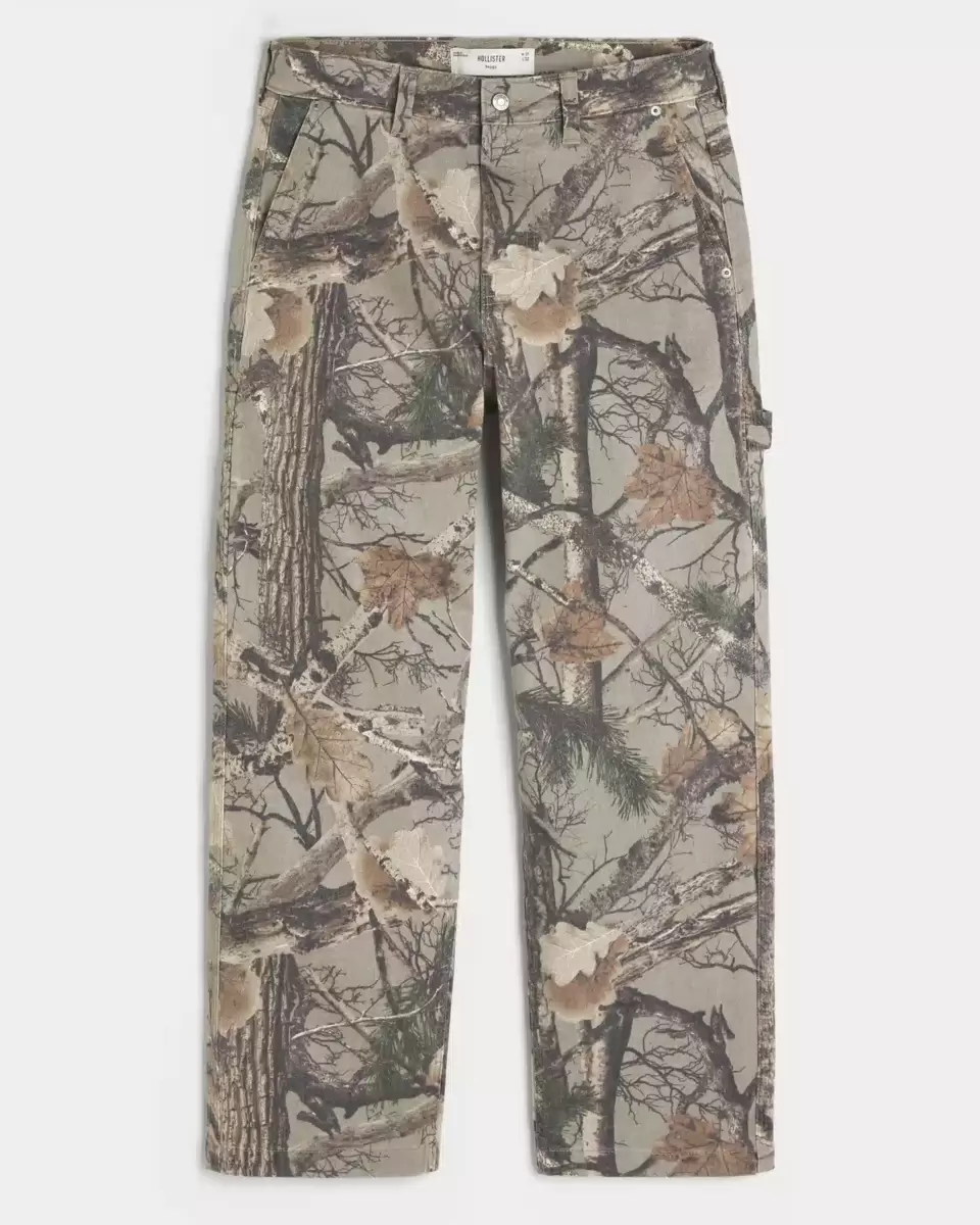 Comfortable denim jeans designed with a baggy leg, left painter loop and extra pockets. All-over camo pattern. Imported.