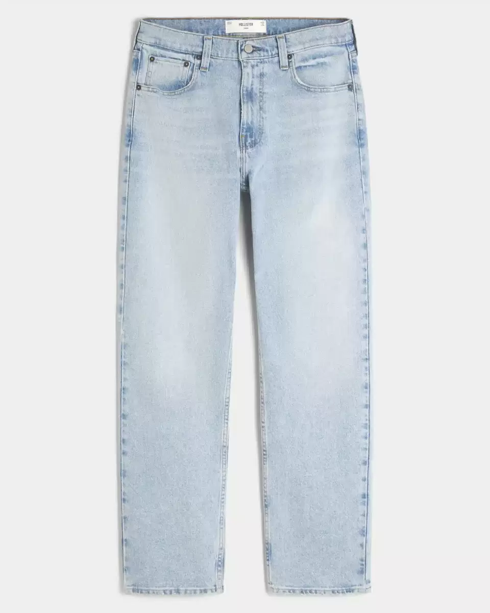 Comfortable denim jeans in a light wash, designed with a loose leg. Fading, whiskering, iconic 5-pocket styling. Imported.