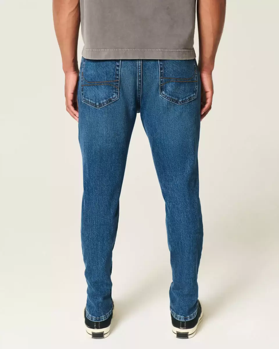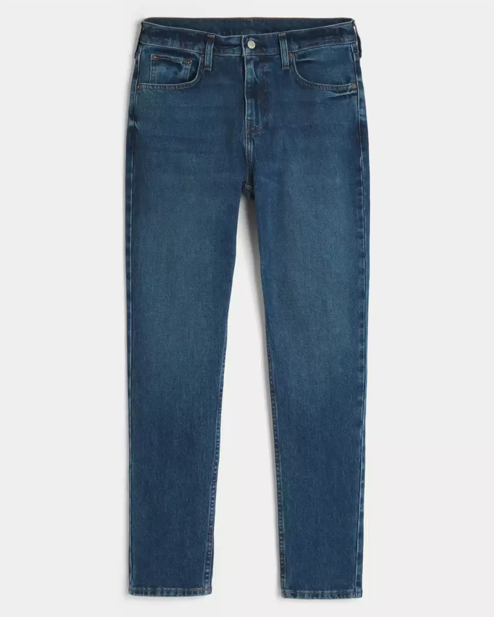 Dark wash jeans designed in a skinny fit with more room through the thigh. Fading, whiskering, iconic 5-pocket styling. Imported.
