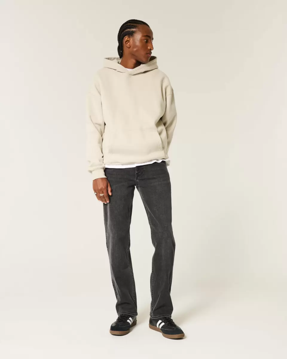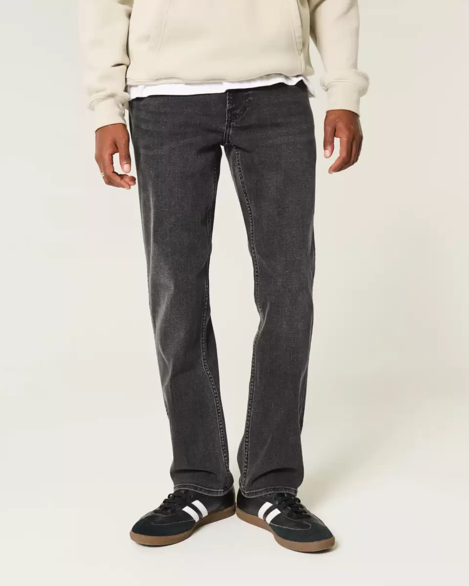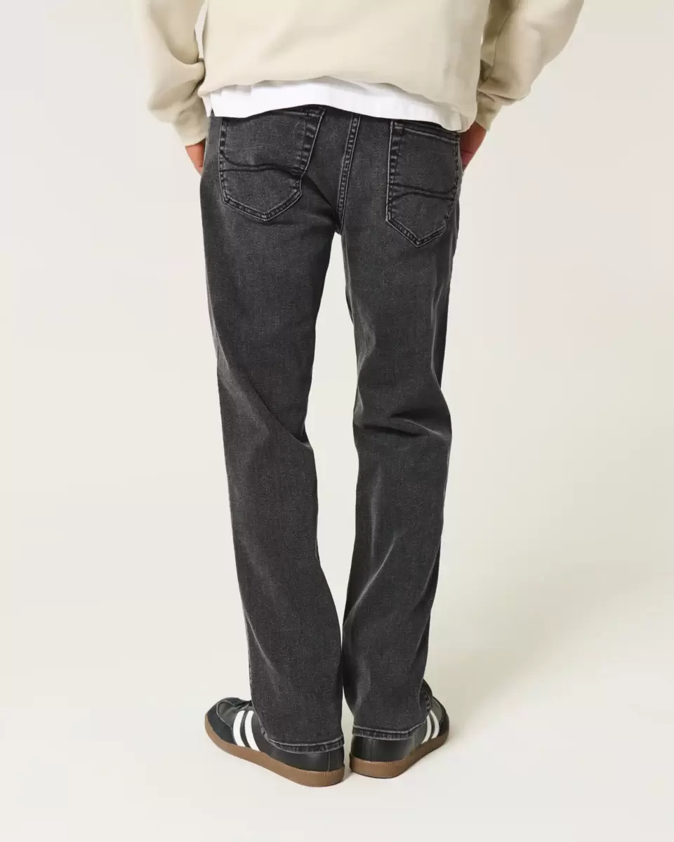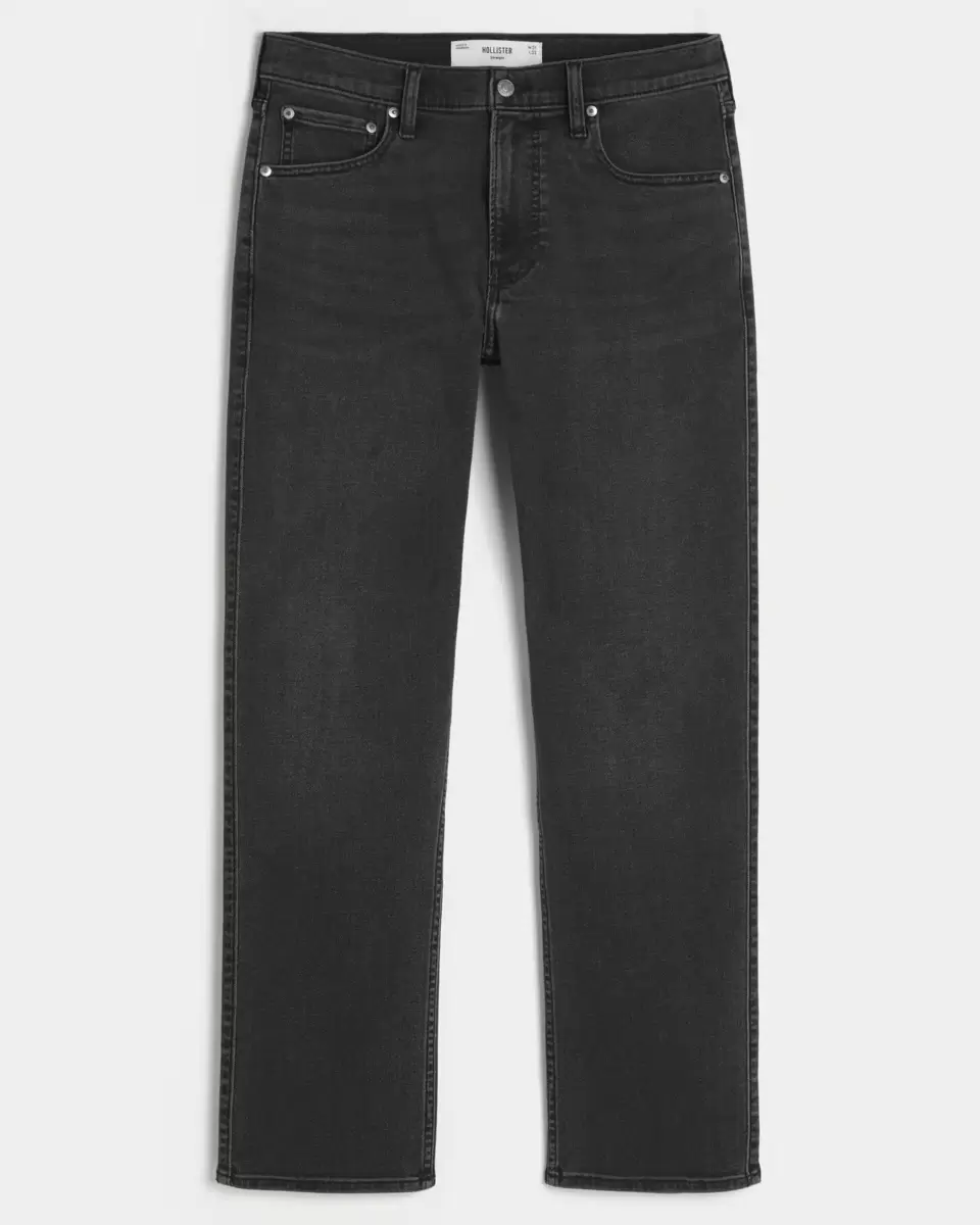 Comfortable jeans in washed black, designed with a straight leg. Subtle fading and whiskering, stretch. Imported.