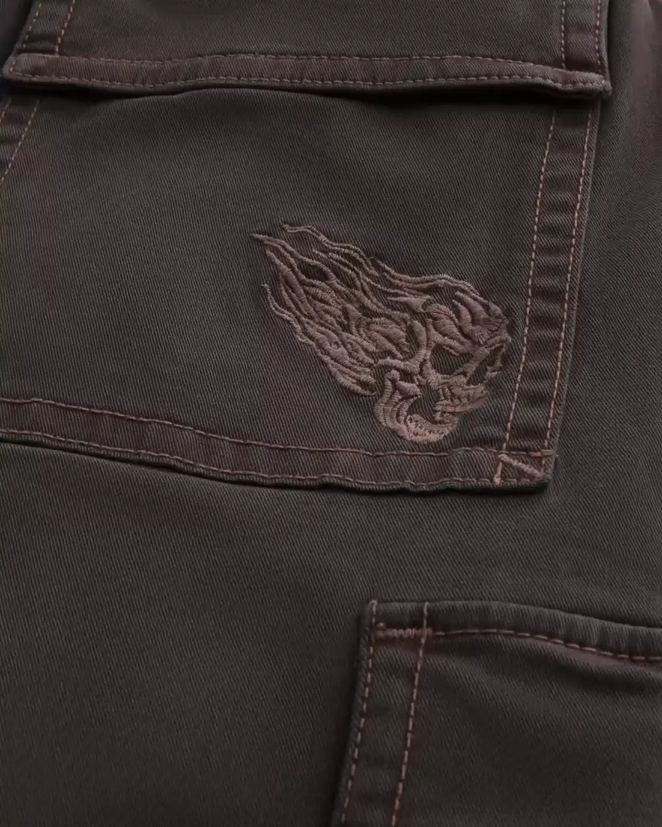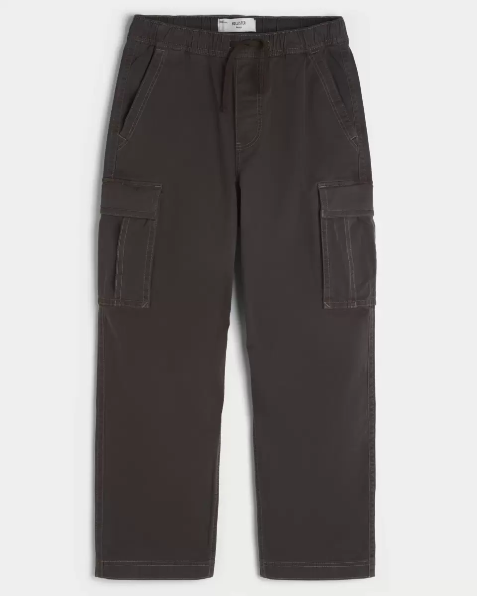 Comfortable twill pants designed with a baggy leg and side cargo pockets. Drawstring waist. Imported.