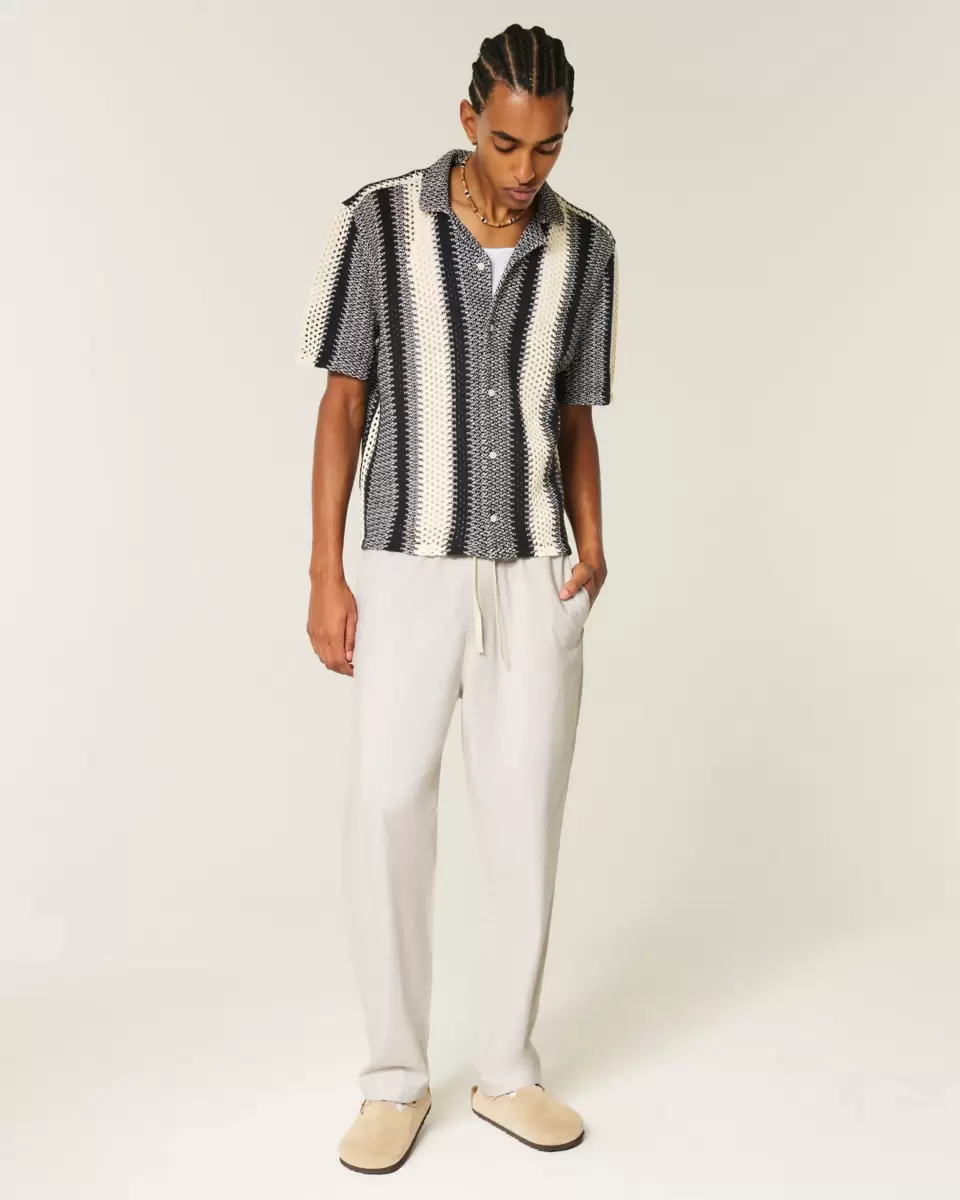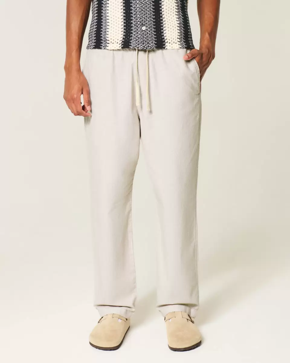 Comfortable pants in a soft linen blend, designed with a loose leg and pull-on drawstring waist. Pockets. Imported.