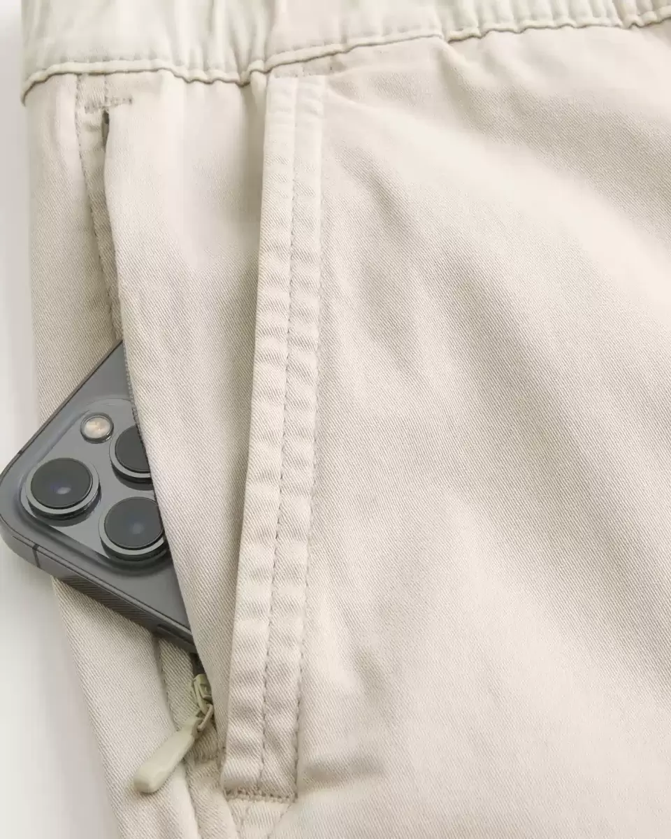 Comfortable twill joggers with a drawstring waist and relaxed leg. Side cargo pockets, front pockets, right zipper pocket, banded hems. Imported.