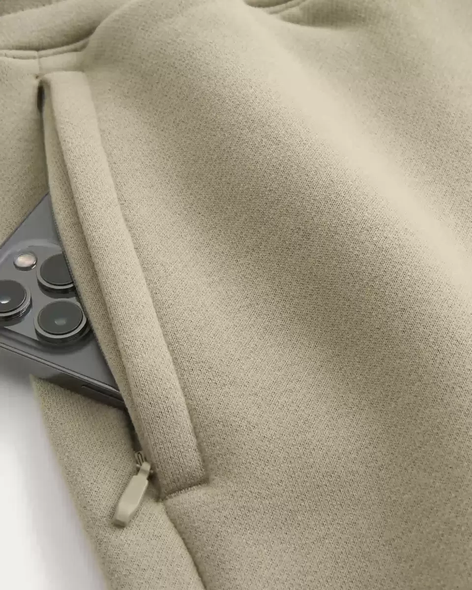 Super soft fleece joggers with a drawstring waist and ribbed cuffs. Pockets, right zipper pocket, relaxed leg. Imported.