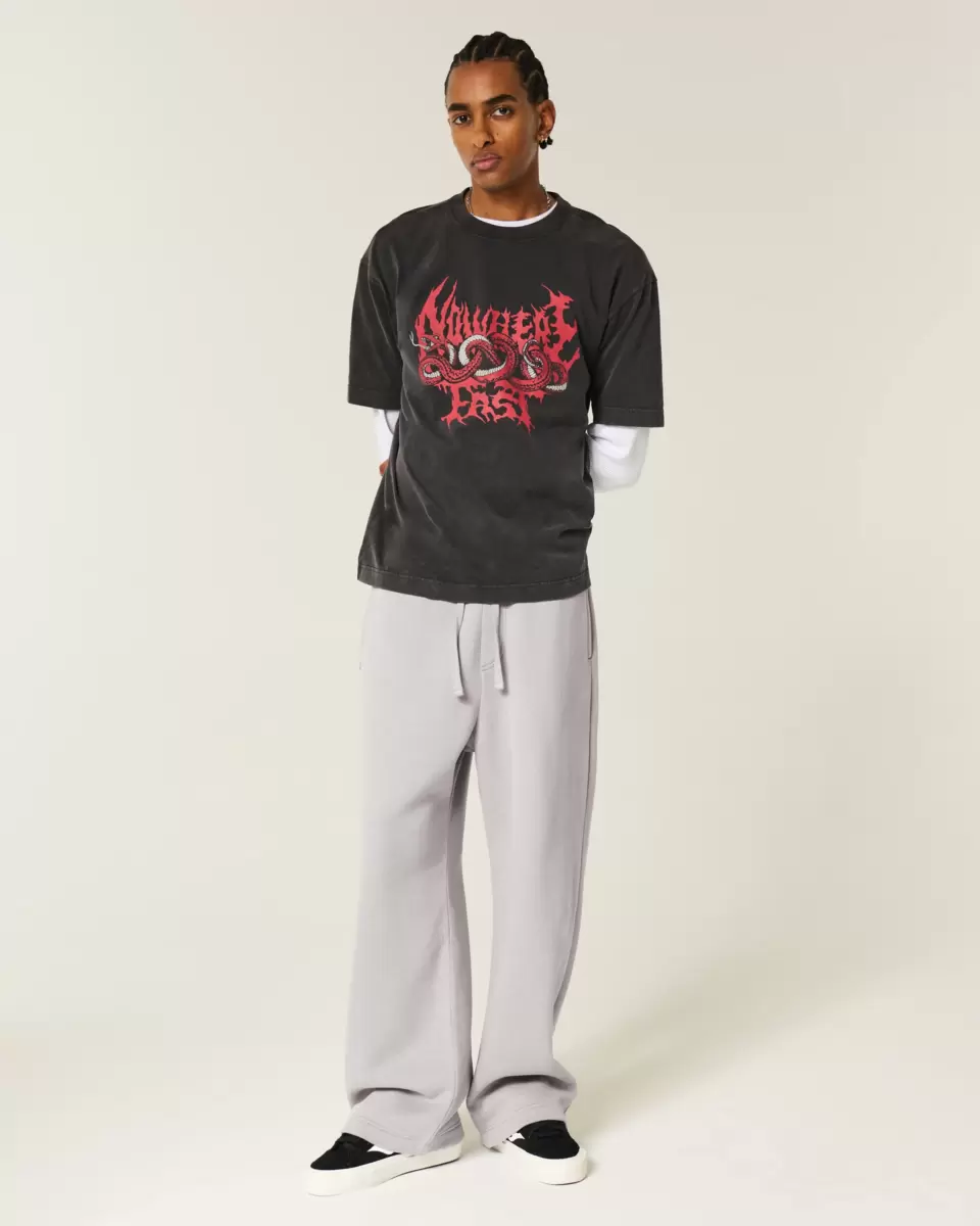 Comfortable fleece sweatpants designed with a super baggy leg and drawstring waist. Love Always Los Angeles print graphics at back pocket, front pockets, right zipper pocket. Imported.