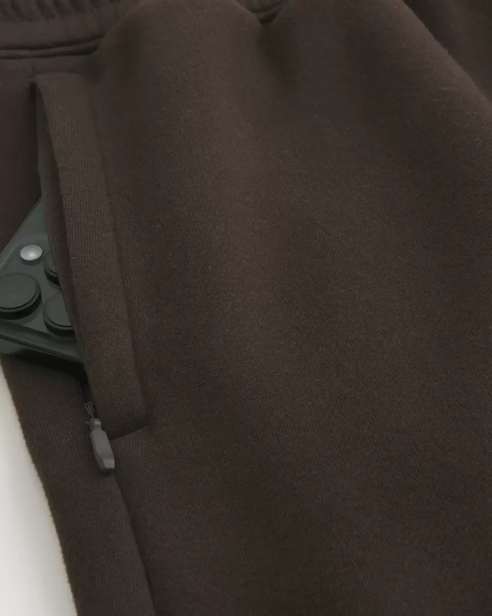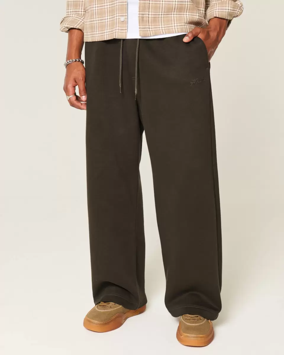 Comfortable fleece sweatpants with a super baggy leg and drawstring waist. Pockets, right zipper pocket, embroidered logo detail. Imported.