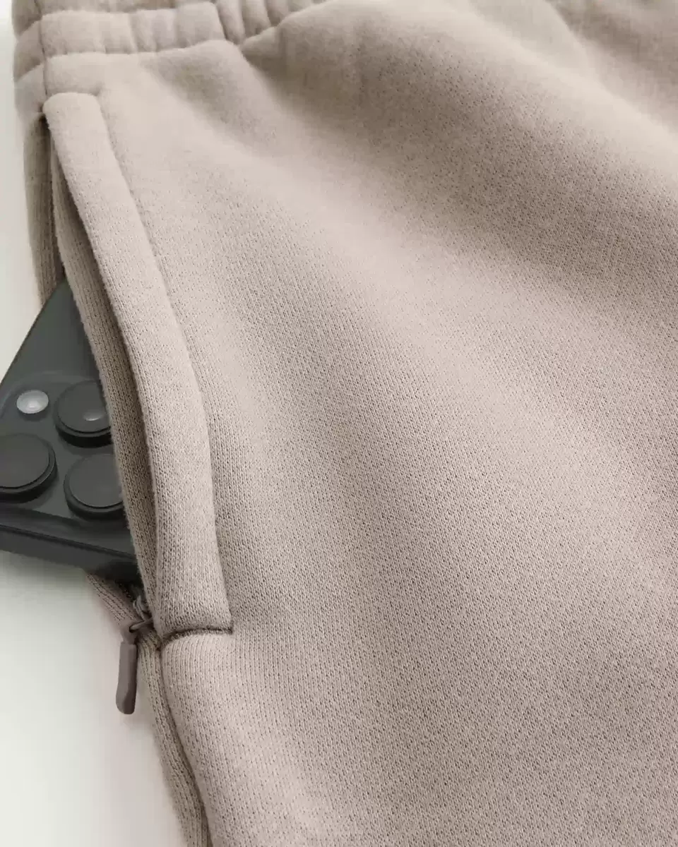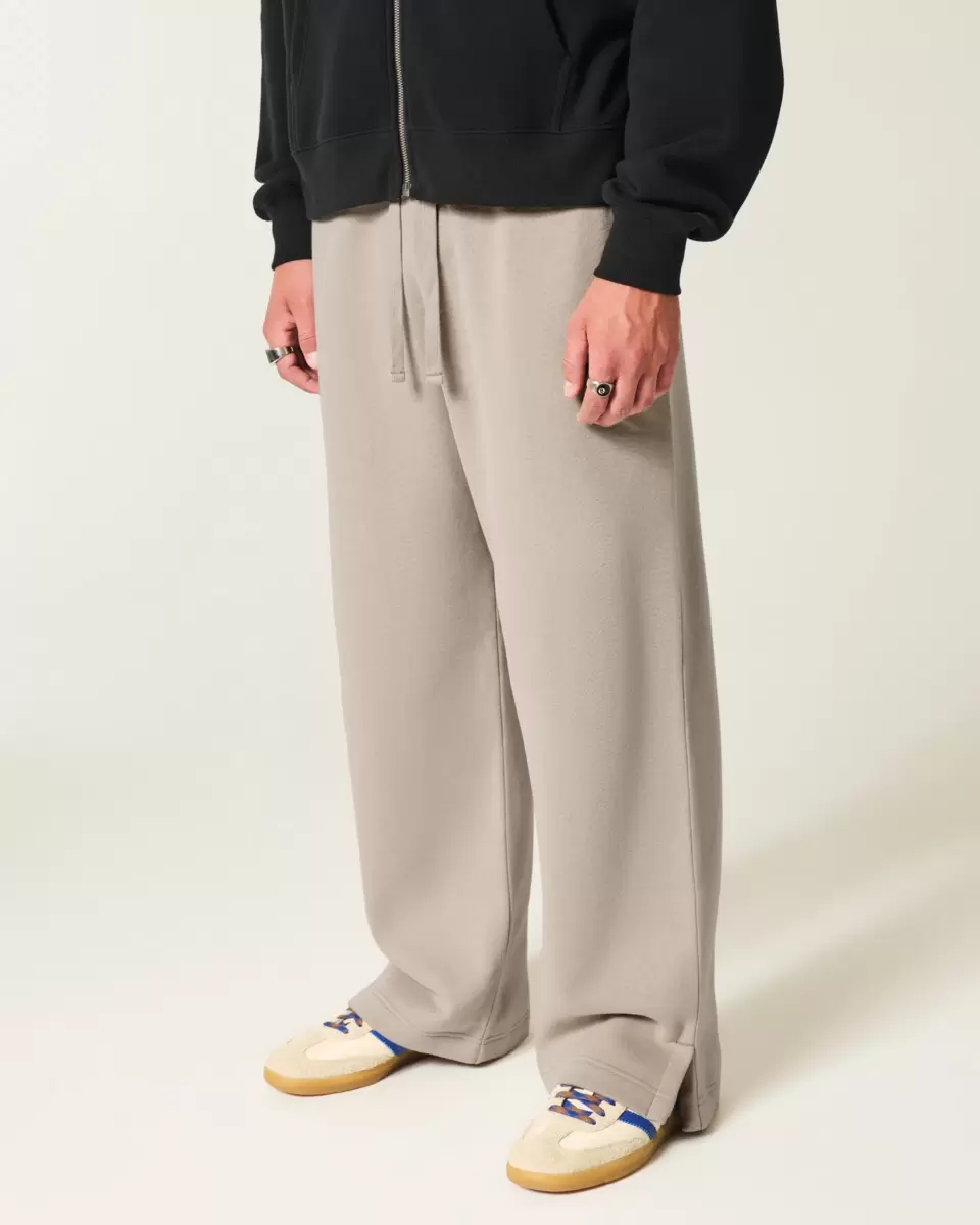 Super soft fleece sweatpants designed with a super baggy leg, featuring split hem details. Drawstring waist, pockets, right zipper pocket. Imported.