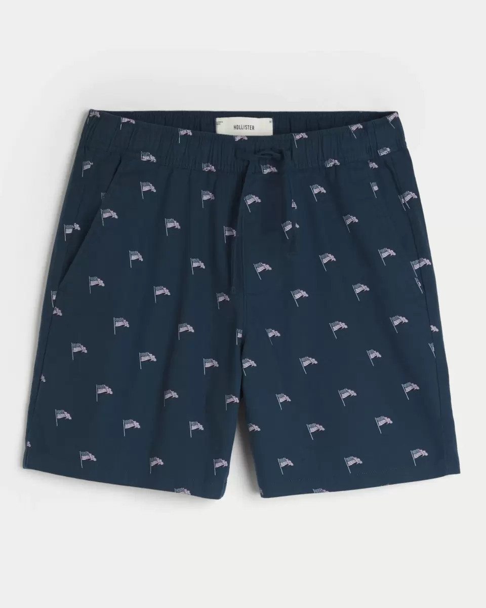 Ultra-comfortable shorts with a drawstring waist and all-over American Flag pattern. Pockets, hits above the knee. Imported.