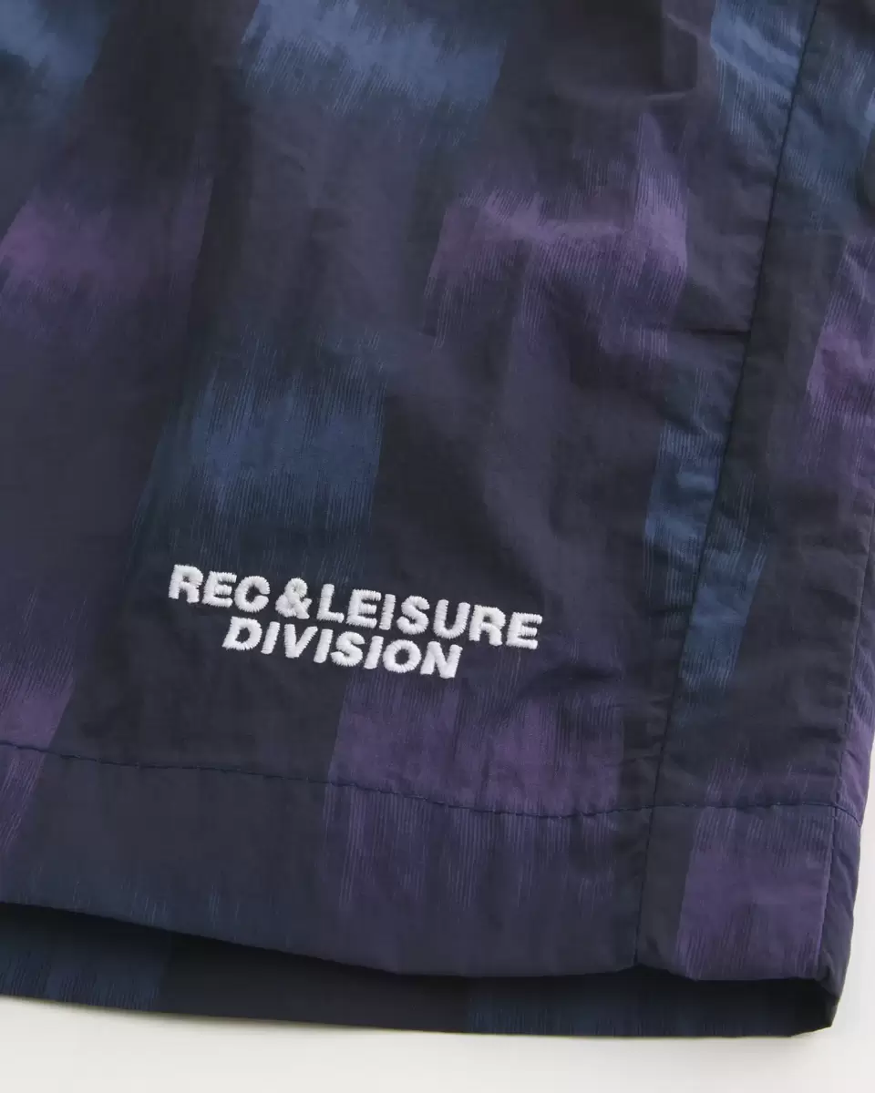 Ultra-comfortable track shorts in 100% nylon, designed with a drawstring waist and right zipper pocket. Embroidered Rec & Leisure Division detail at left leg. Hits above the knee.