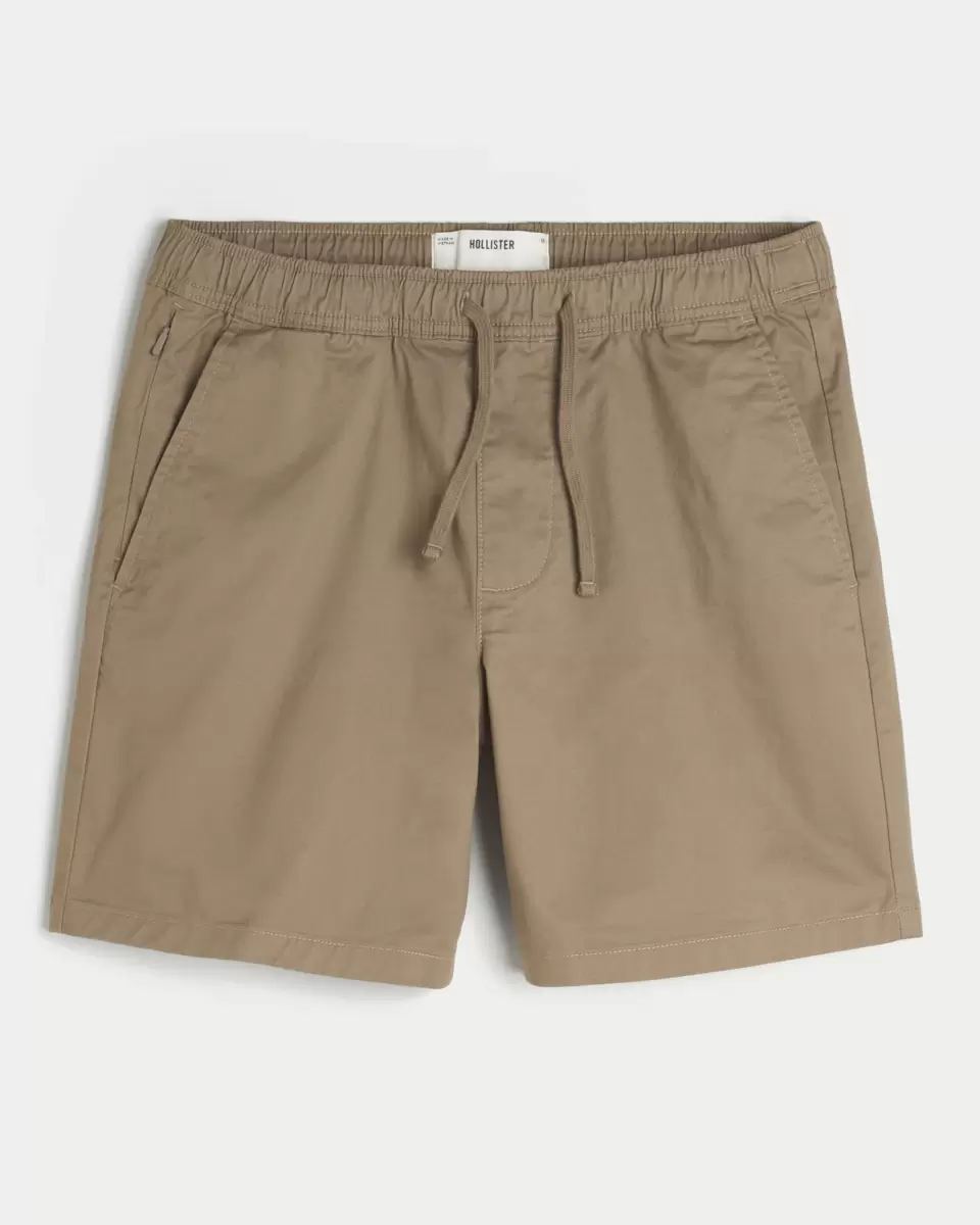 Ultra-comfortable shorts in twill fabric, designed with a pull-on drawstring waist and above-the-knee fit. Pockets, right zipper pocket. Imported.