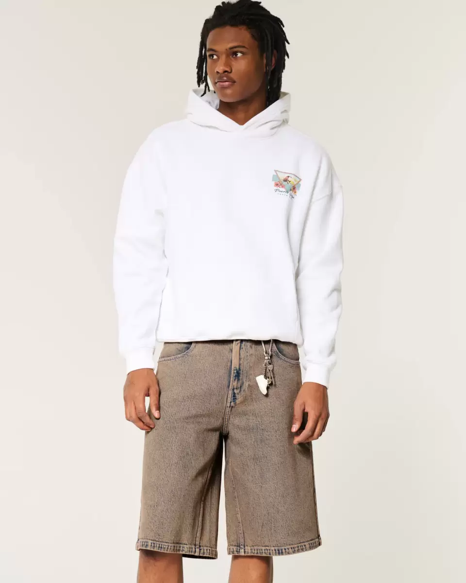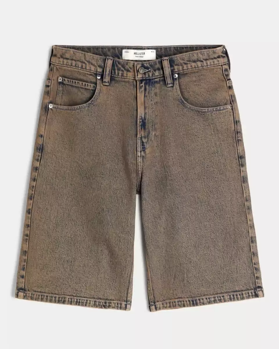 Classic denim shorts in a brown overdye wash, designed with a super baggy fit. Hits below the knee. Imported.