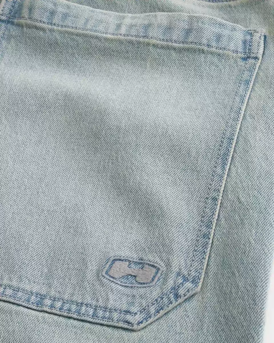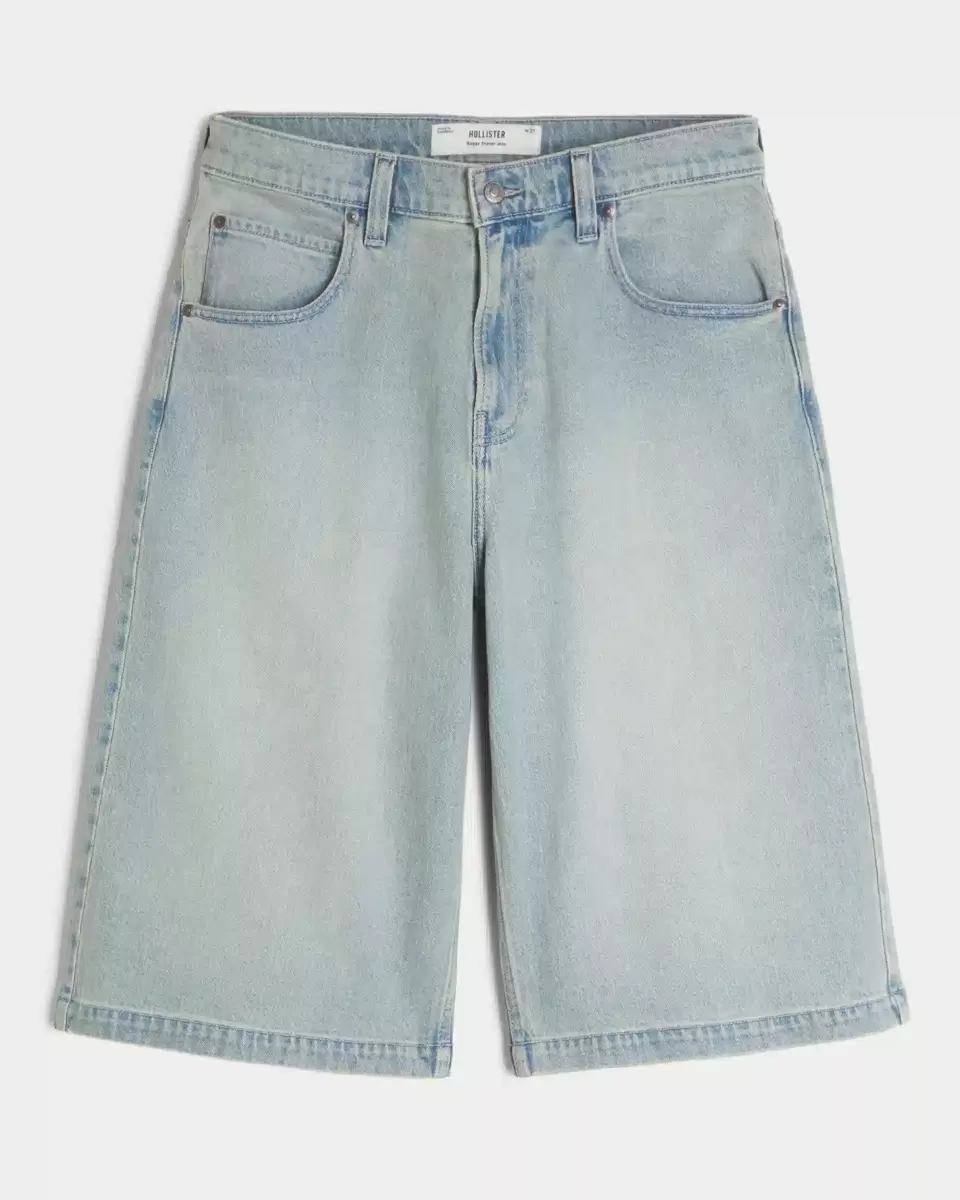 Classic half-length jeans designed with a baggy leg. Light wash, fading. Imported.