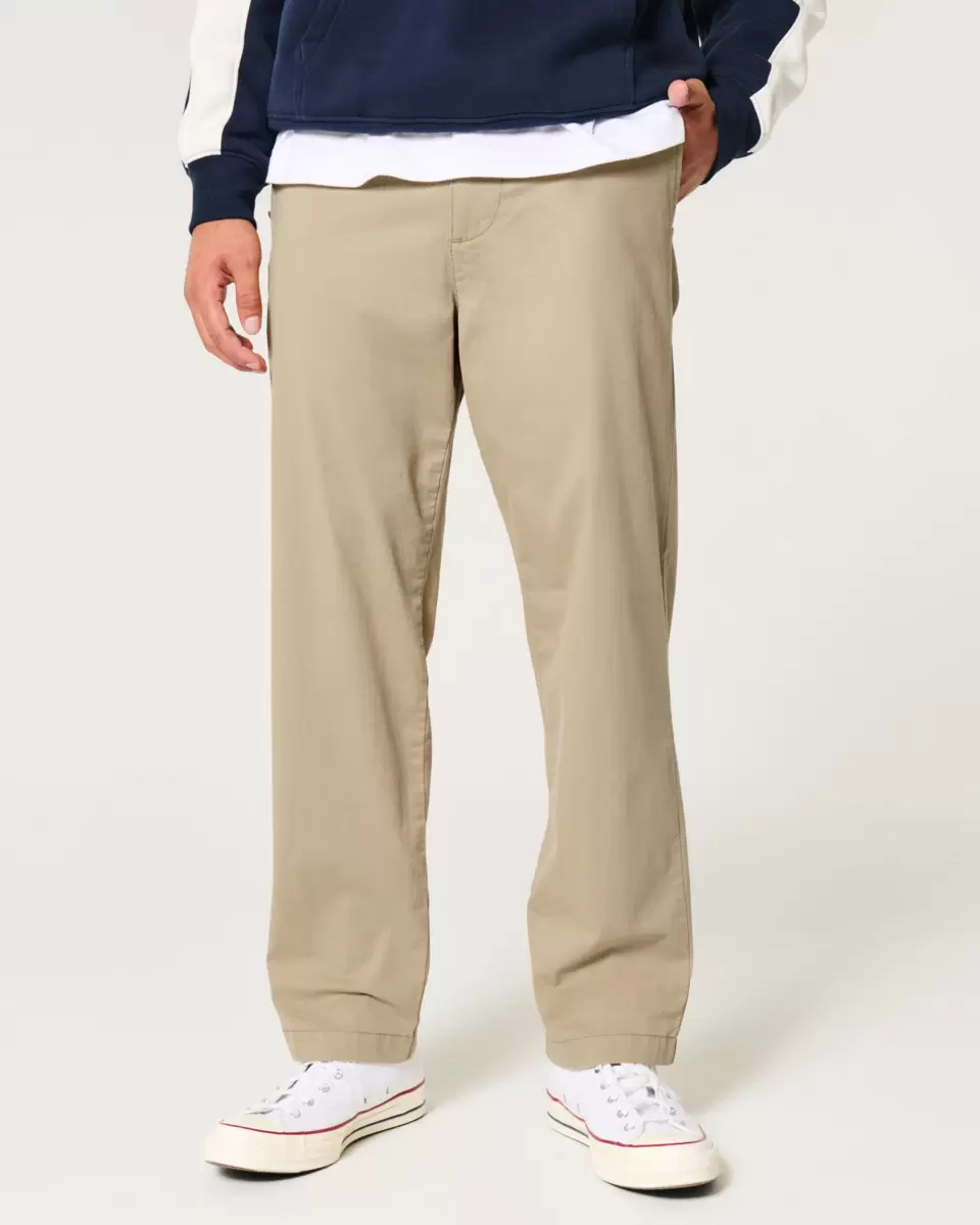 Ultra-comfortable twill pants with stretch, designed with a loose leg. Pockets, right zipper pocket. Imported.