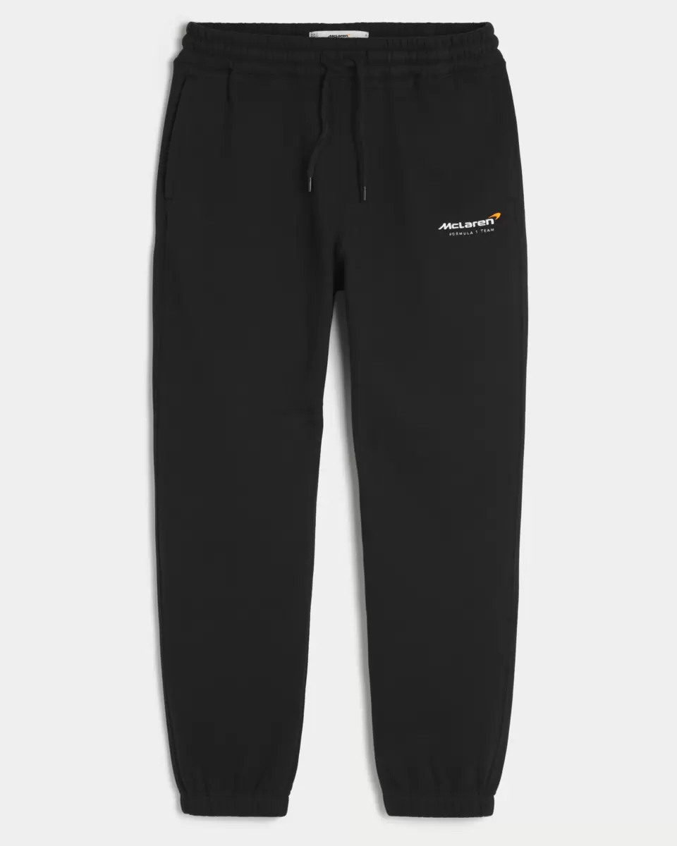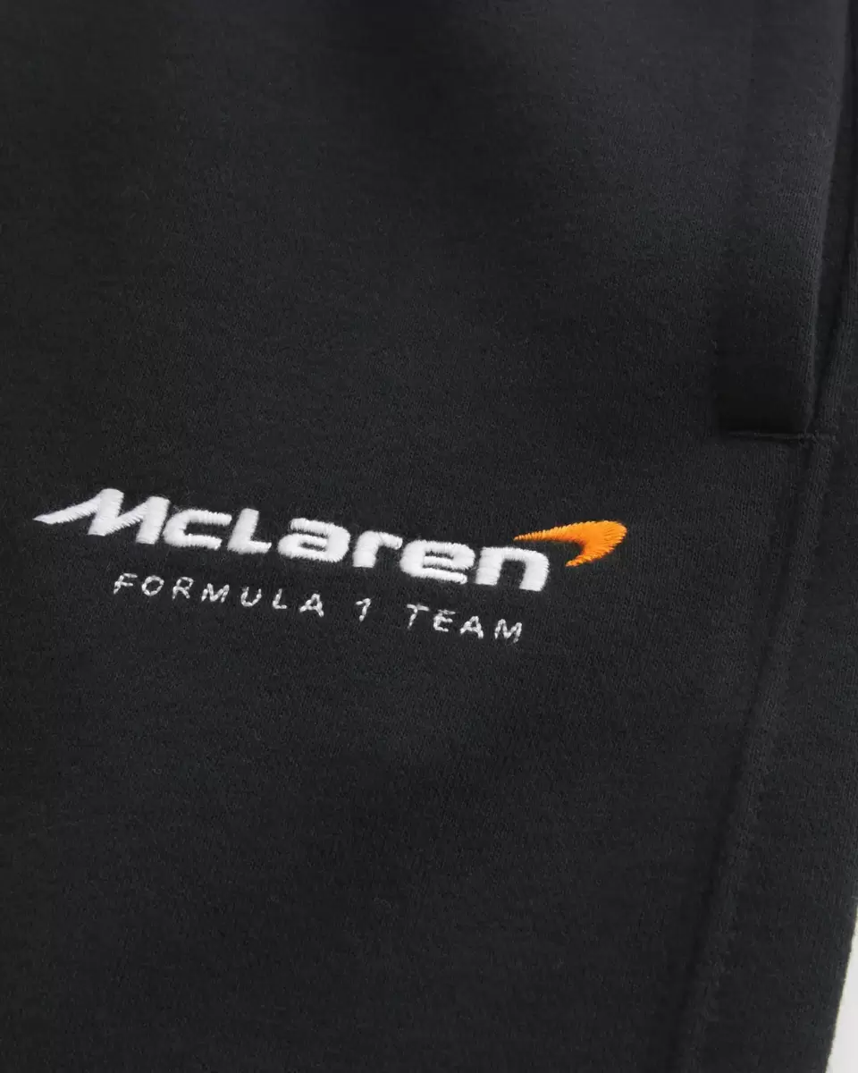 Super soft fleece sweatpants with official licensed McLaren graphic embroidery, a drawstring waist and banded hems. Pockets. Imported.