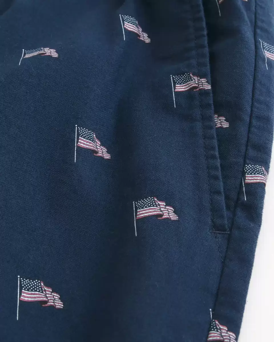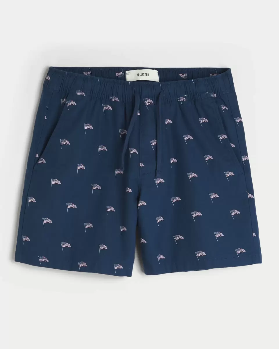 Comfortable shorts in 100% cotton, designed with a mid-thigh length. All-over American Flag graphic pattern, pockets, pull-on drawstring waist. Imported.