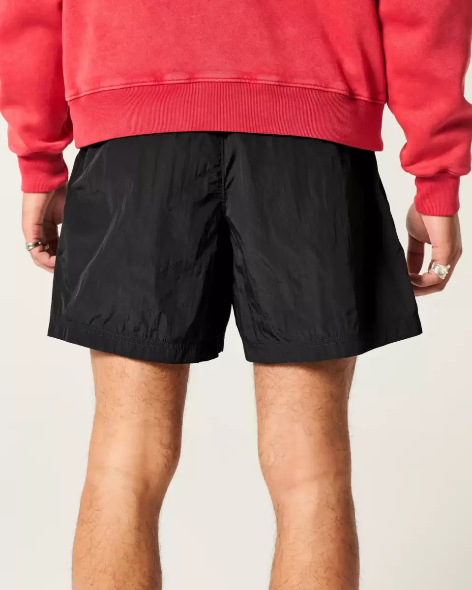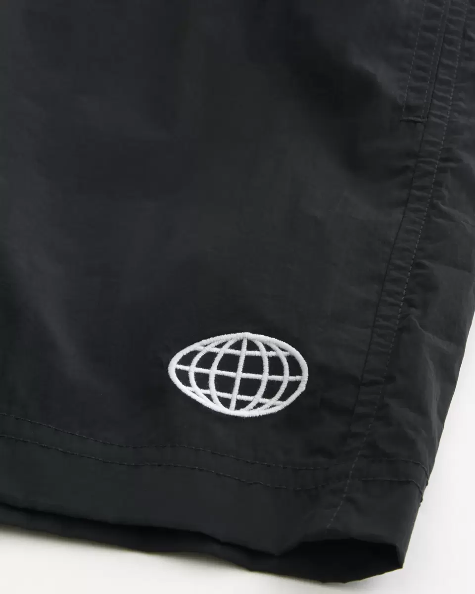 Classic soccer shorts that hit mid-thigh with an embroidered icon at the left leg. Drawstring waist, pockets. Imported.