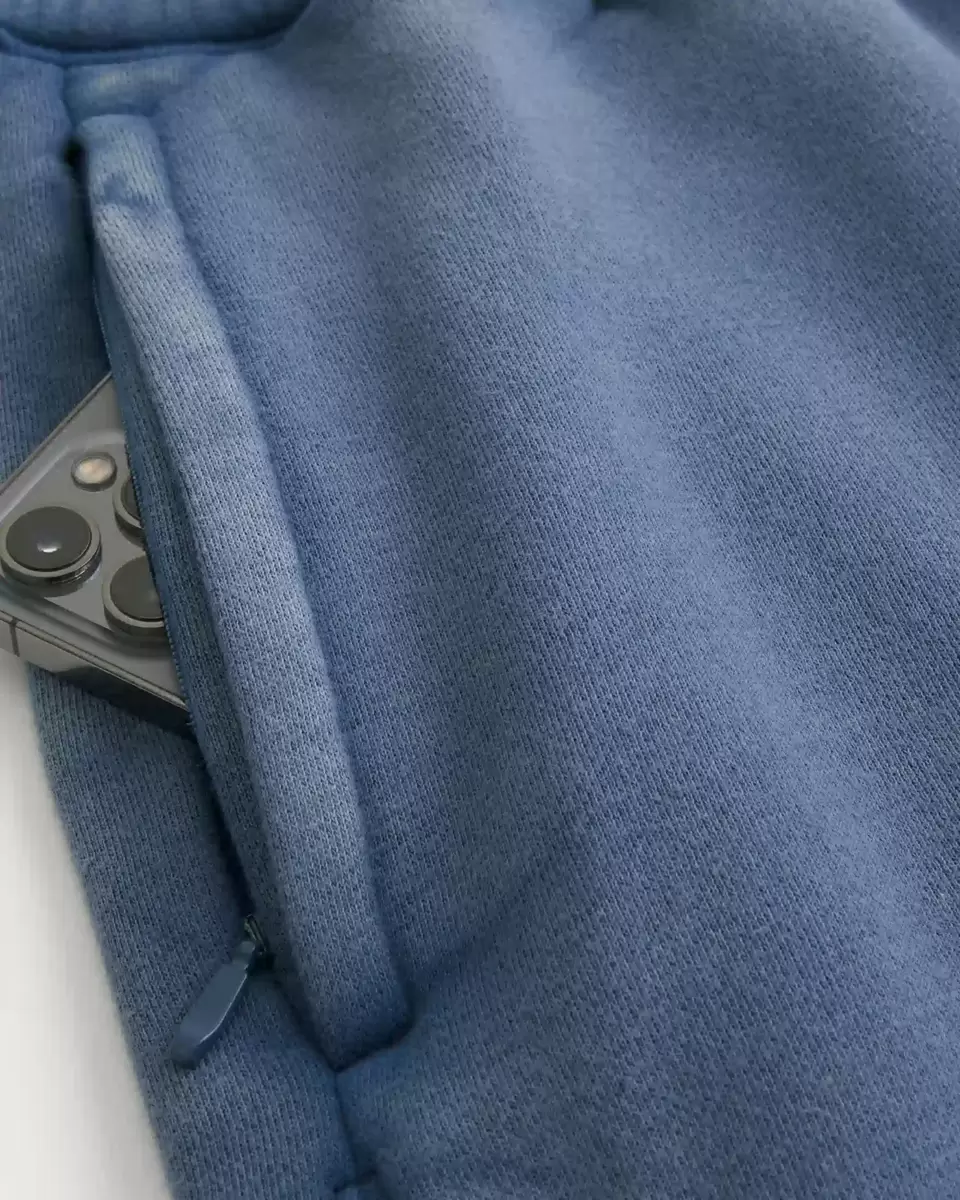 Super soft fleece shorts designed with a loose leg that hits mid-thigh. Drawstring waist, pockets, right zipper pocket, washed look, embroidered logo detail at left hem.