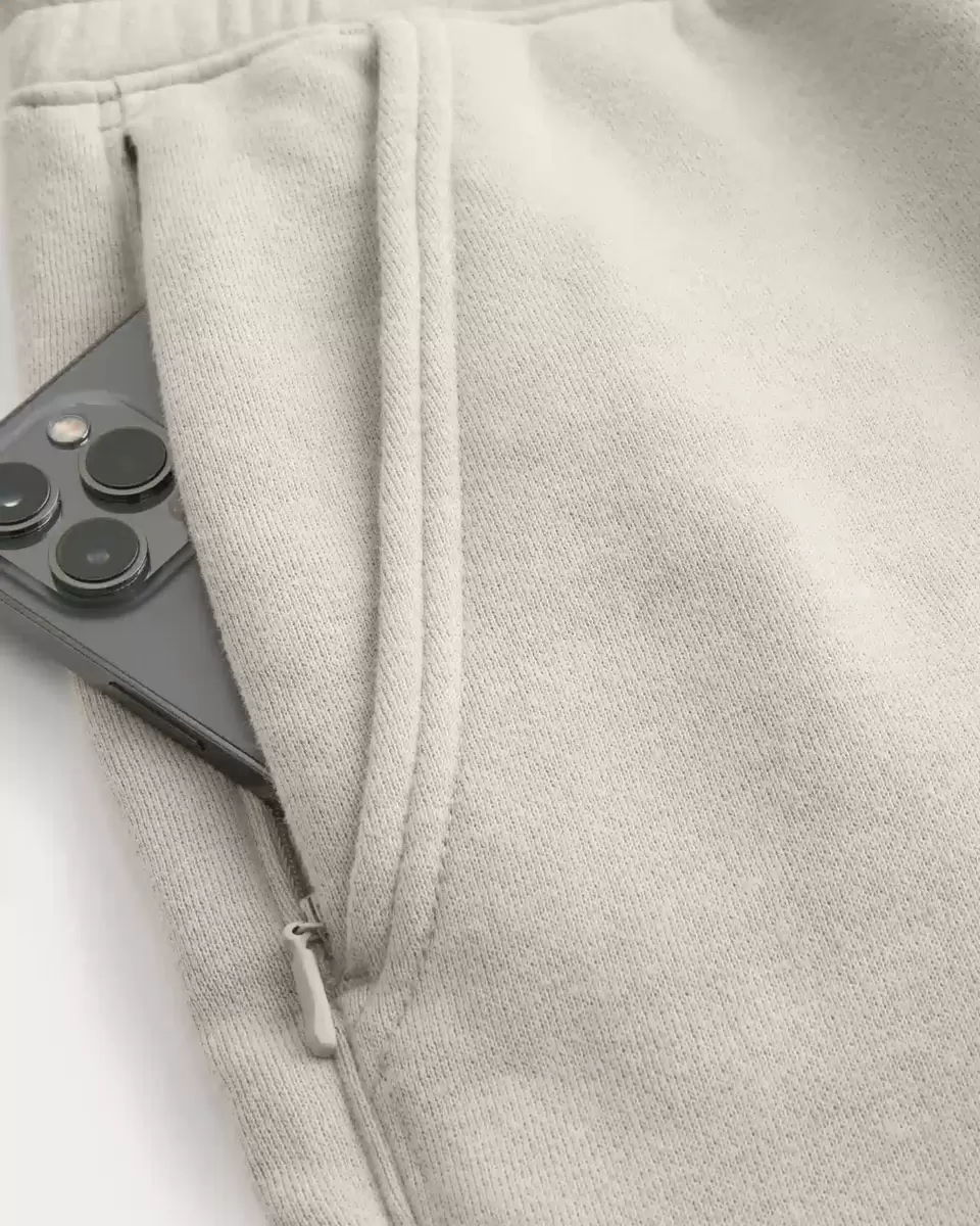 Super soft fleece joggers designed with a relaxed leg, drawstring waist and banded hems. Embroidered logo detail at left leg, pockets, right zipper pocket.