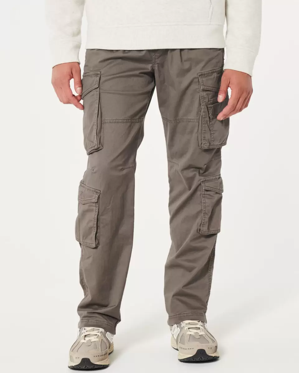 Ultra-comfortable cargo pants designed with a slim straight leg and double side utility pockets. Front pockets, pull-on style drawstring waist. Made with Hollister Epic Flex twill