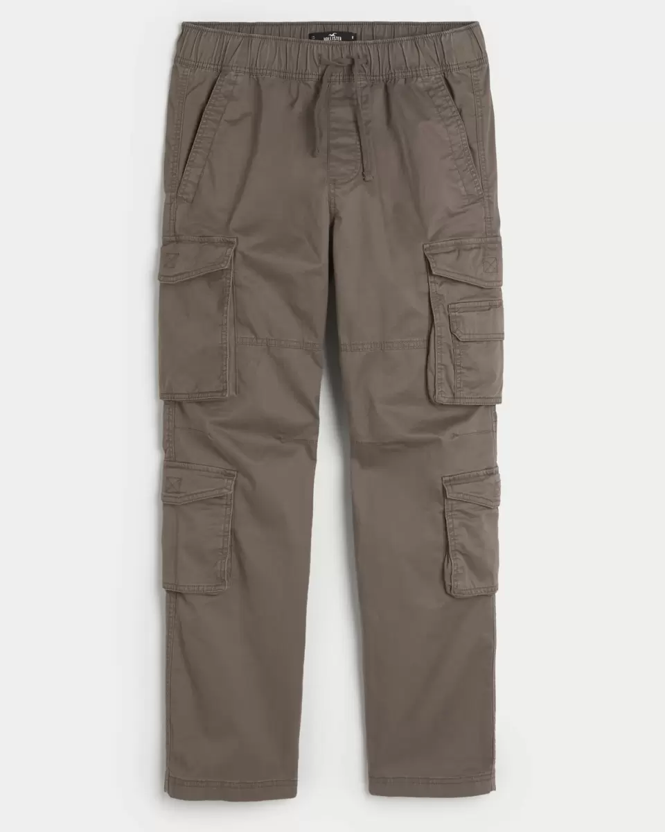 Ultra-comfortable cargo pants designed with a slim straight leg and double side utility pockets. Front pockets, pull-on style drawstring waist. Made with Hollister Epic Flex twill fabric. Imported.