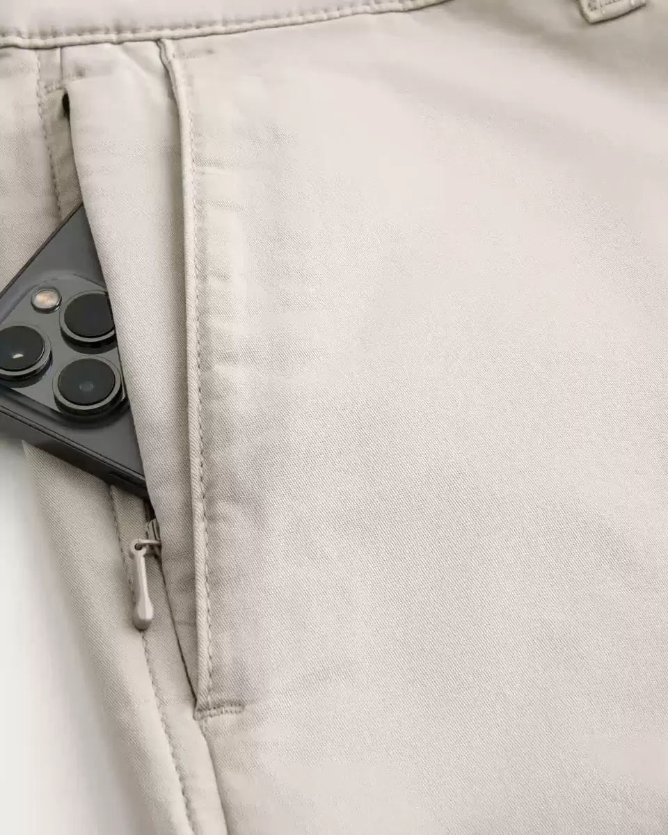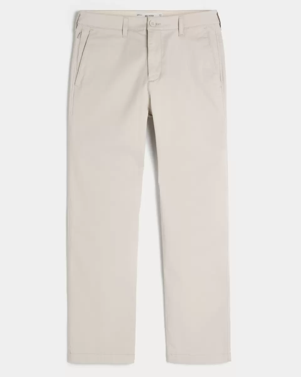 Ultra-comfortable twill chino pants with stretch, designed with a straight leg from top to bottom. Pockets, right zipper pocket.