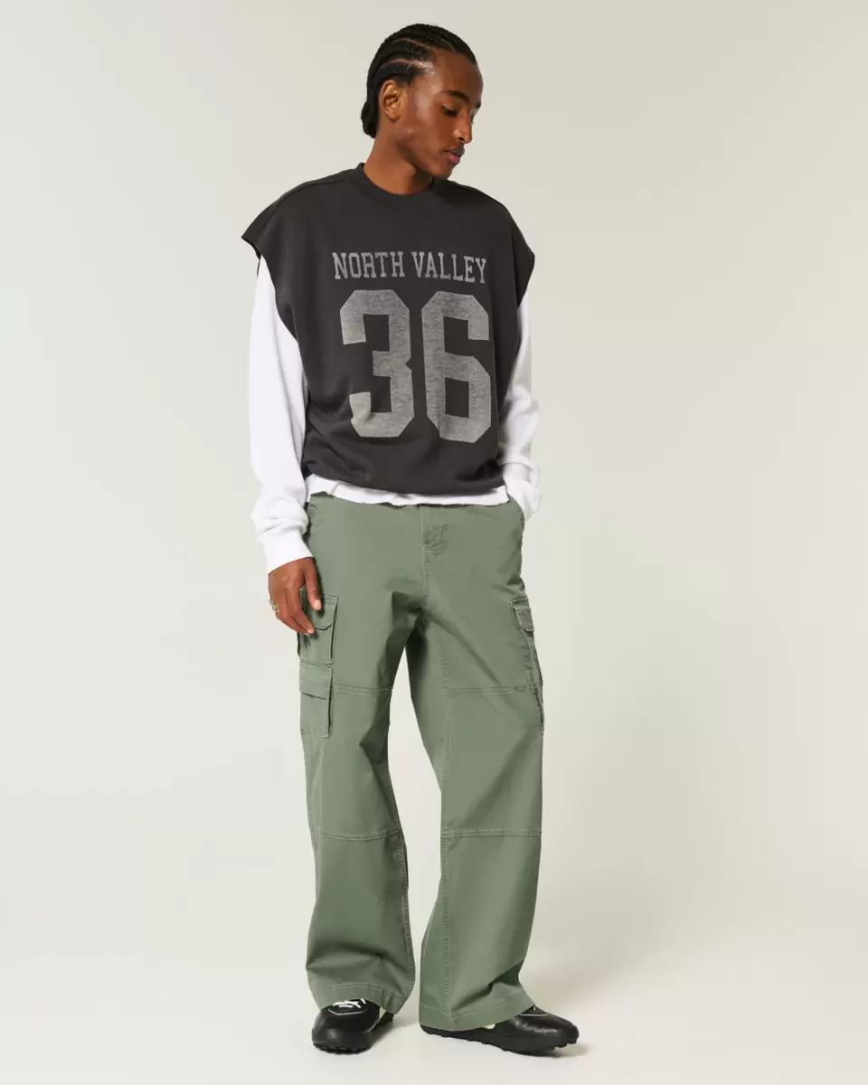 Classic, comfortable pants with stretch, designed with a super baggy leg and side cargo pockets. Imported.