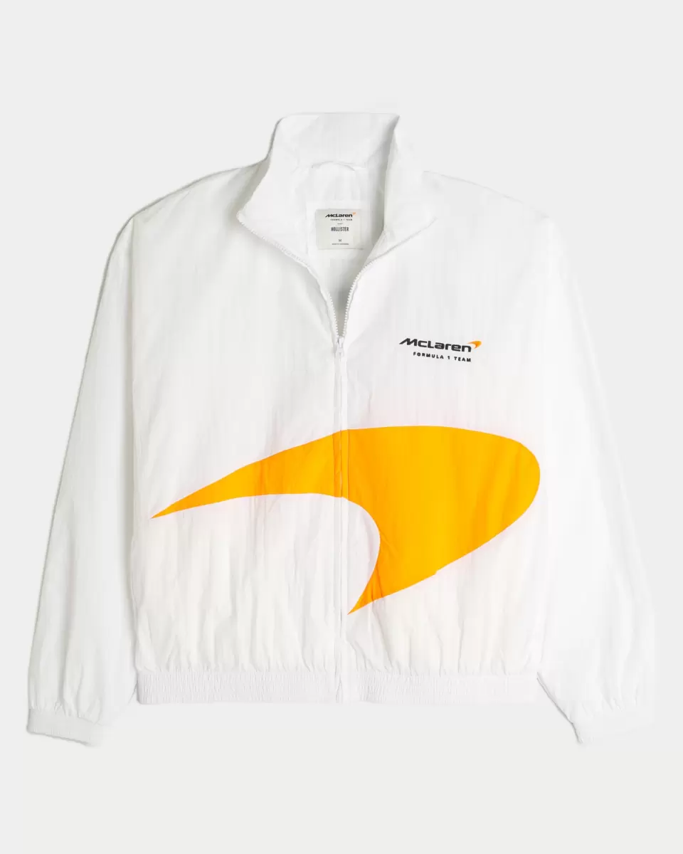A classic track jacket with a full zip-up closure, featuring official licensed McLaren Formula 1 Team graphic embroidery and applique at the left chest and back. Mock-neck collar, banded hems. Imported.