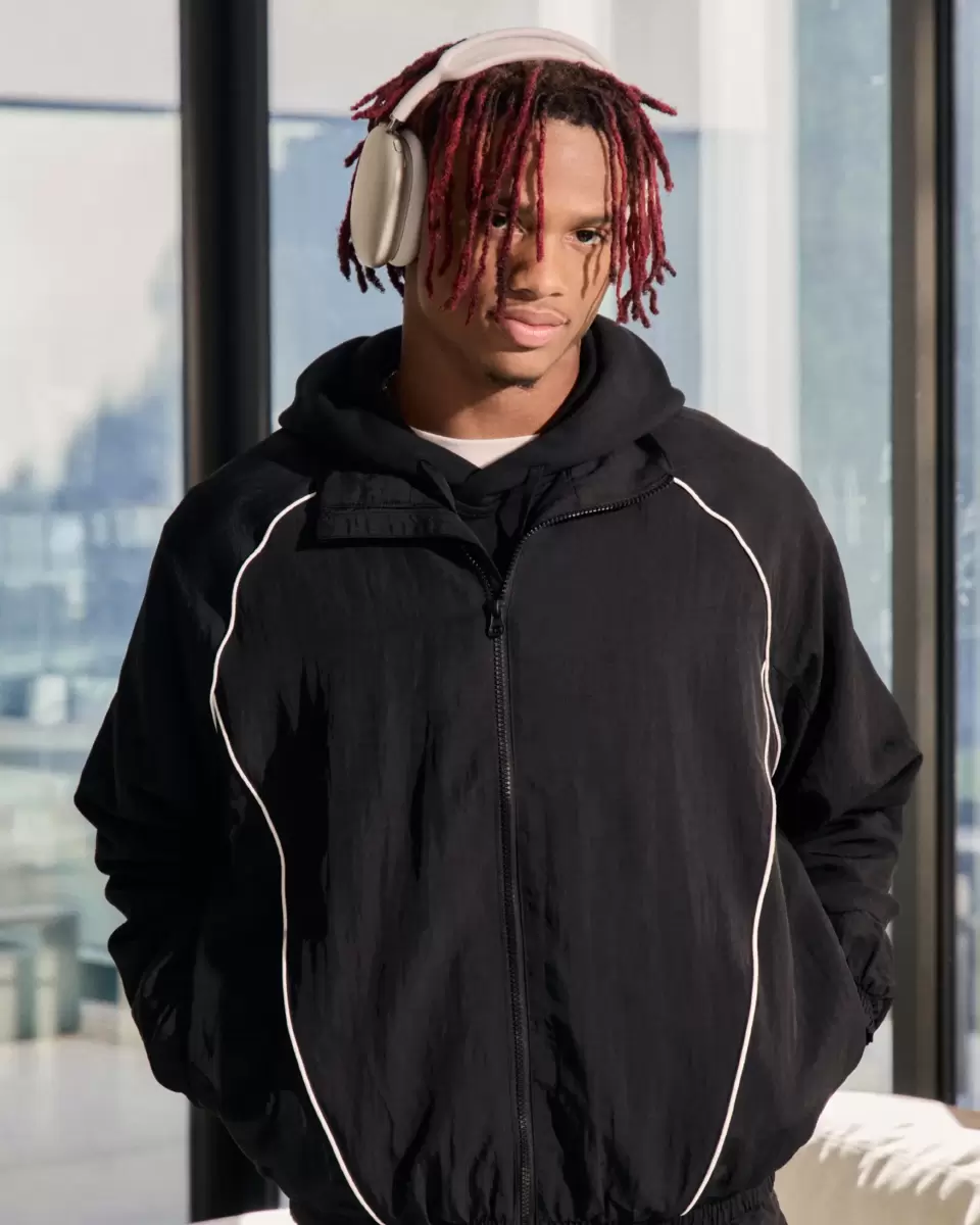 An ultra-comfortable windbreaker jacket with a full zip-up closure piping details. Banded hems. Imported.