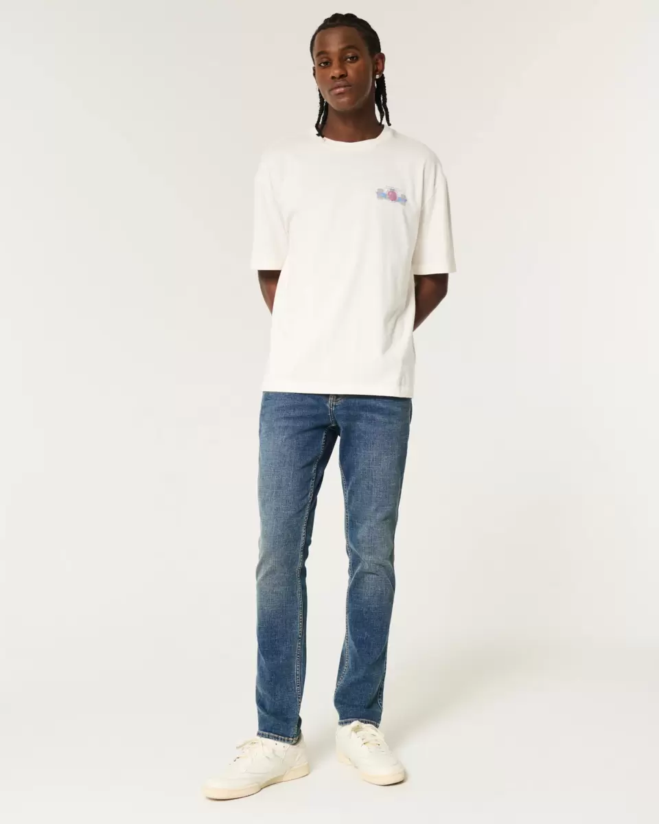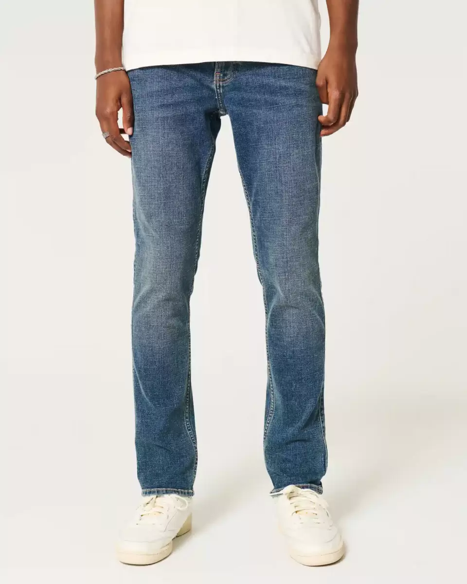 Ultra-comfortable jeans in a dark medium wash, designed with a slim leg. Fading and whiskering. Advanced Stretch denim. Imported.