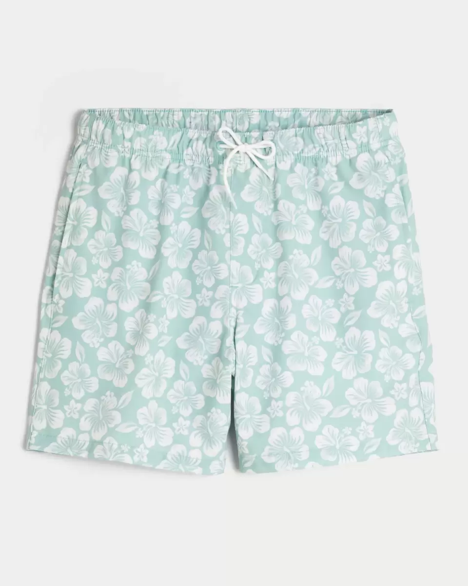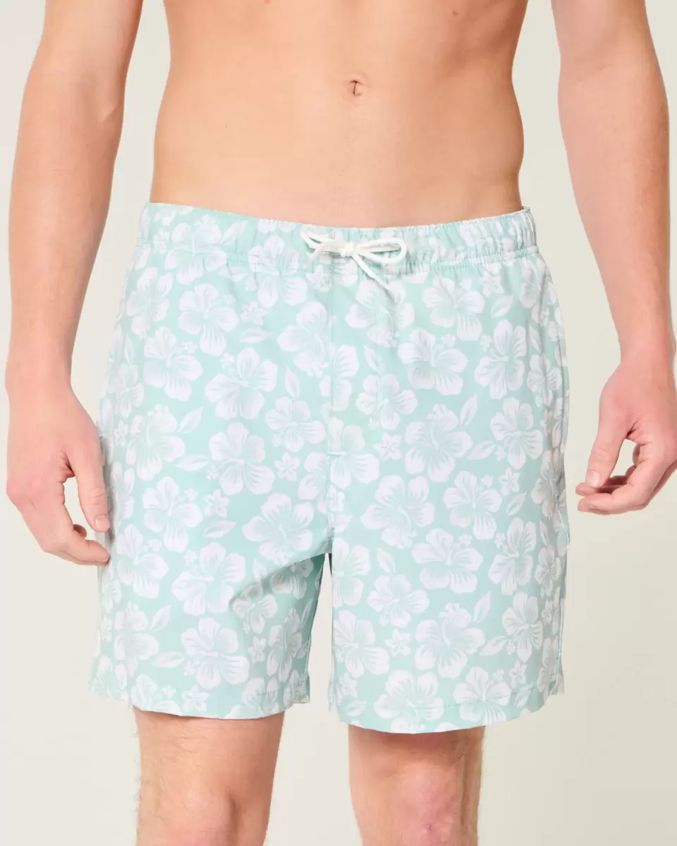 Shorter-length swim trunks that hit mid-thigh. Featuring comfortable 4-way stretch swim fabric and a 6″ inseam. Front pockets, mesh lining. Imported.