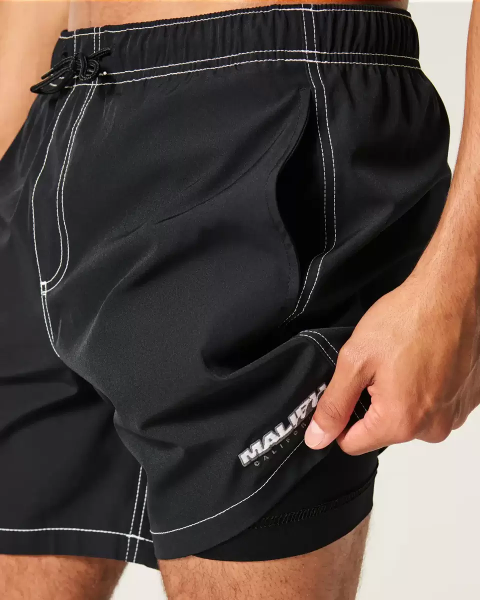 Shorter-length swim trunks that hit mid-thigh. Featuring comfortable 4-way stretch swim fabric and a 6″ inseam. Pockets, contrast stitching, embroidered Malibu California detail. Imported.