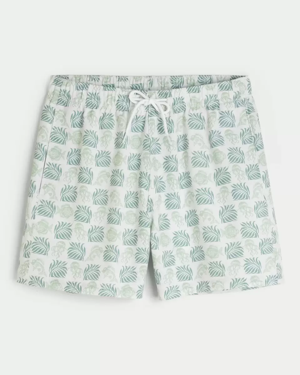 Shorter-length swim trunks that hit mid-thigh. Featuring comfortable 4-way stretch swim fabric and a 6″ inseam. Pockets. Imported.