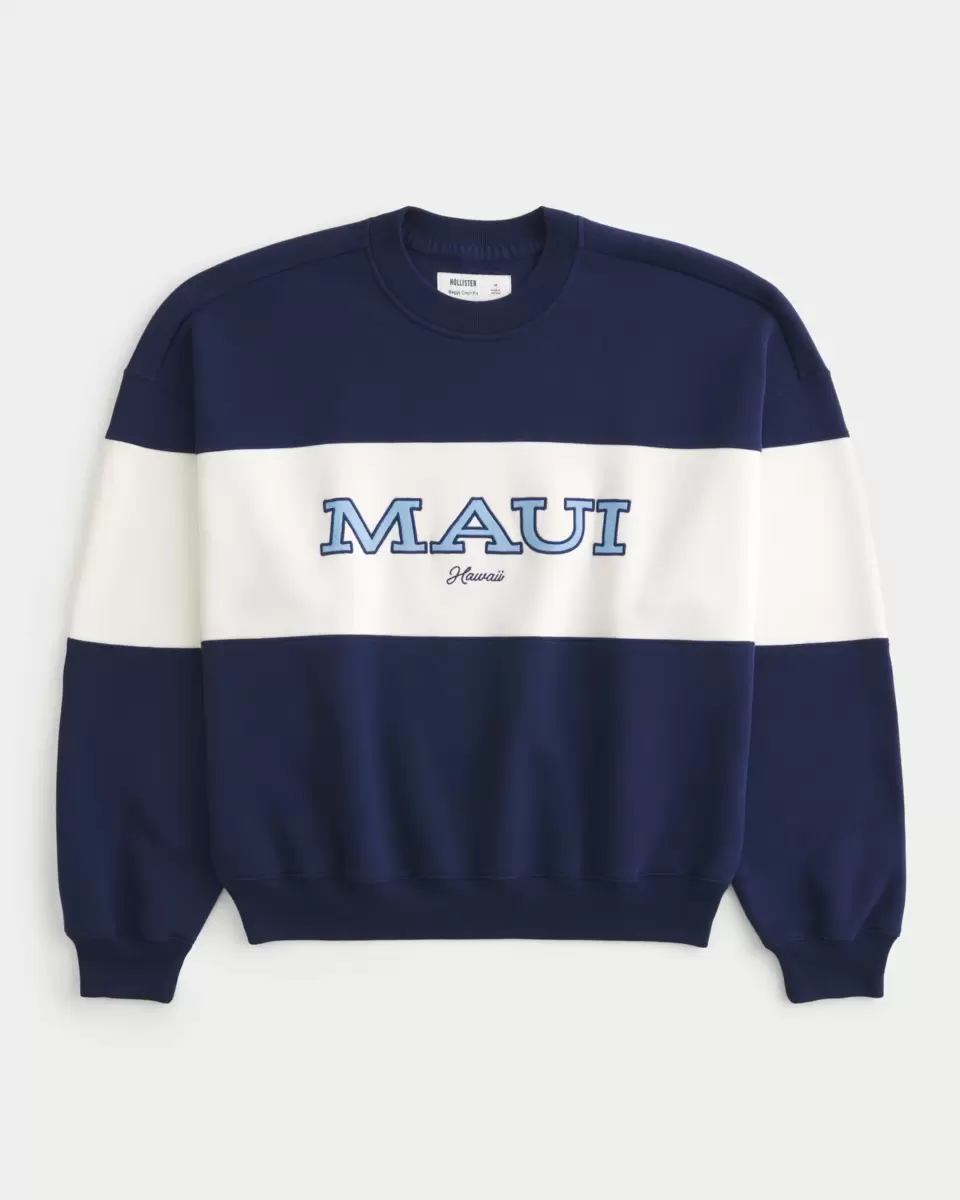 This super soft fleece sweatshirt features Maui Hawaii graphic embroidery and applique. Crew neckline, long sleeves. Baggy Cinch Fit. Imported.