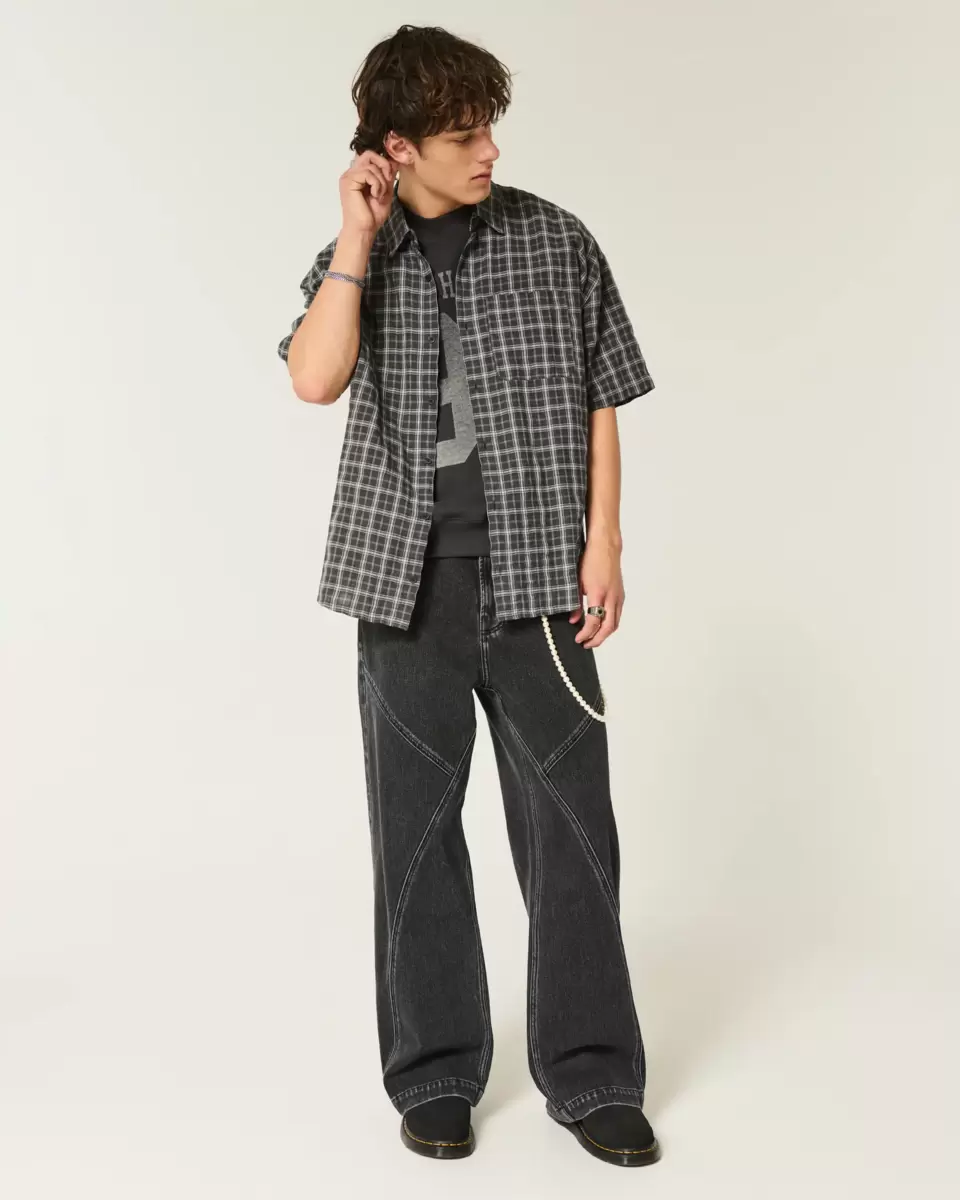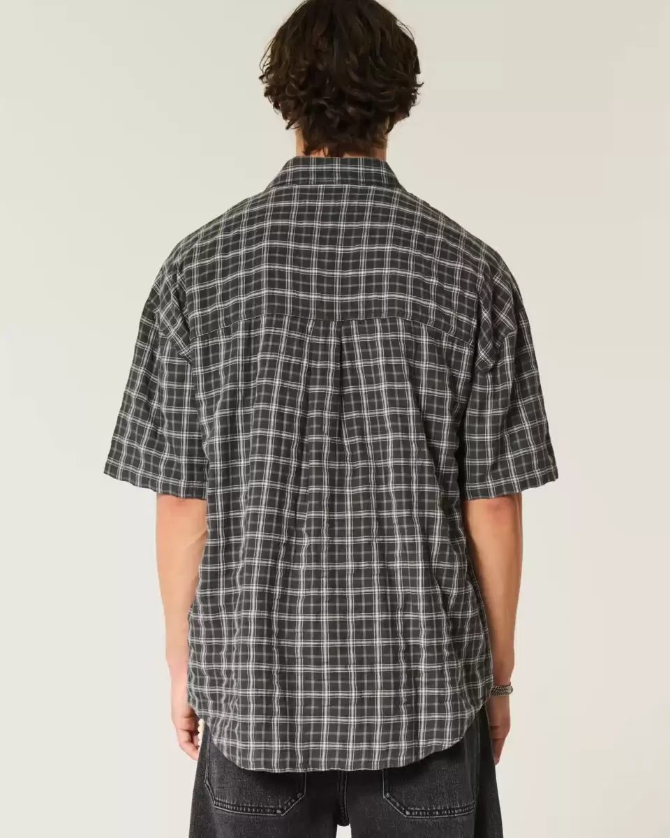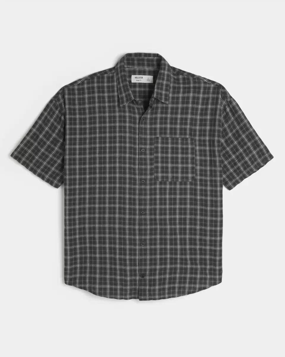 This classic, comfortable short-sleeve shirt features a plaid pattern and left chest pocket. Full button closure, collar. Baggy Fit.