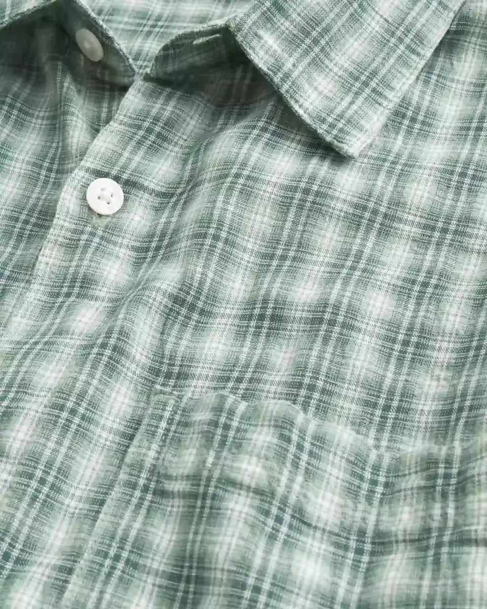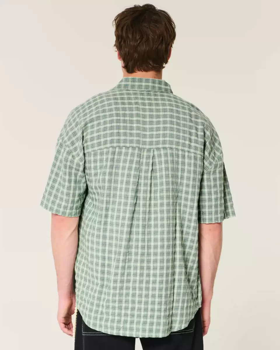 This classic, comfortable short-sleeve shirt features a plaid pattern and left chest pocket. Full button closure, collar. Baggy Fit.