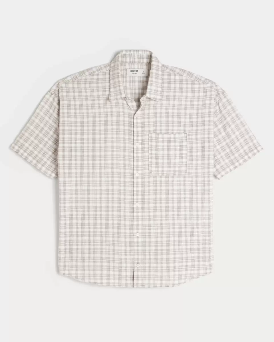 This classic, comfortable short-sleeve shirt features a plaid pattern and left chest pocket. Full button closure, collar. Baggy Fit. Imported.