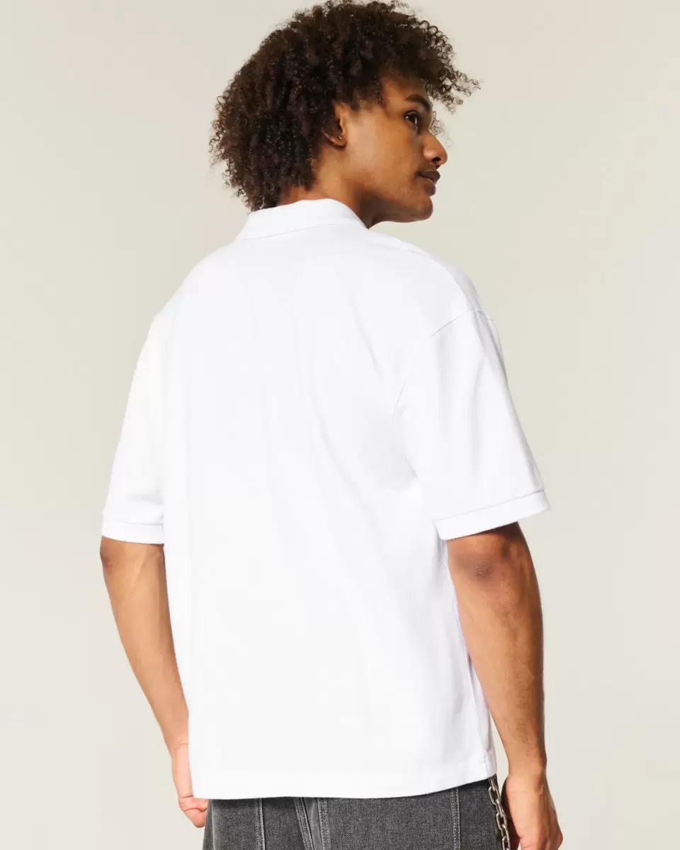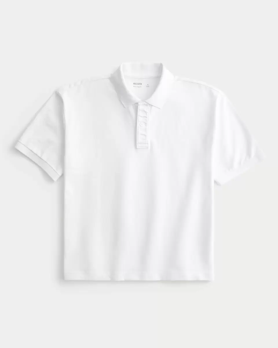 This classic, comfortable polo is made with soft pique fabric. Collar, button placket, collar. Boxy Crop Fit.