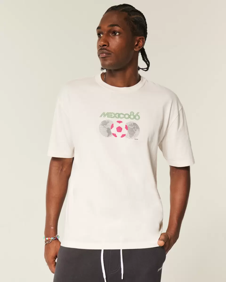 A super soft 100% cotton tee featuring official licensed FIFA World Cup Mexico 86 print graphics at the front, back and left sleeve. Crew neckline, short sleeves. Boxy Fit. Imported.