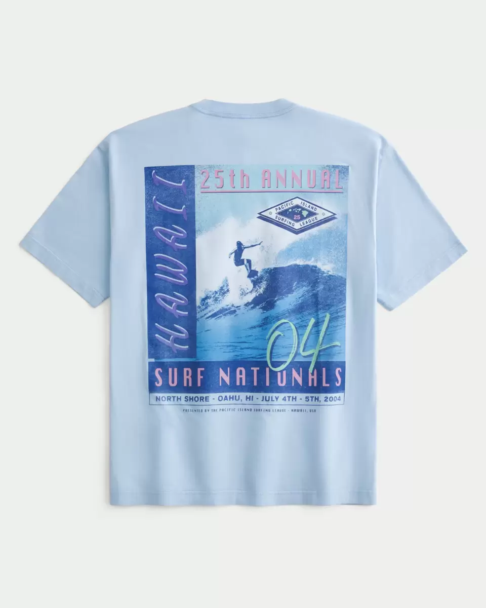 A super soft 100% cotton tee featuring Hawaii Surf Nationals print graphics at the left chest and back. Crew neckline, short sleeves. Boxy Fit. Imported.