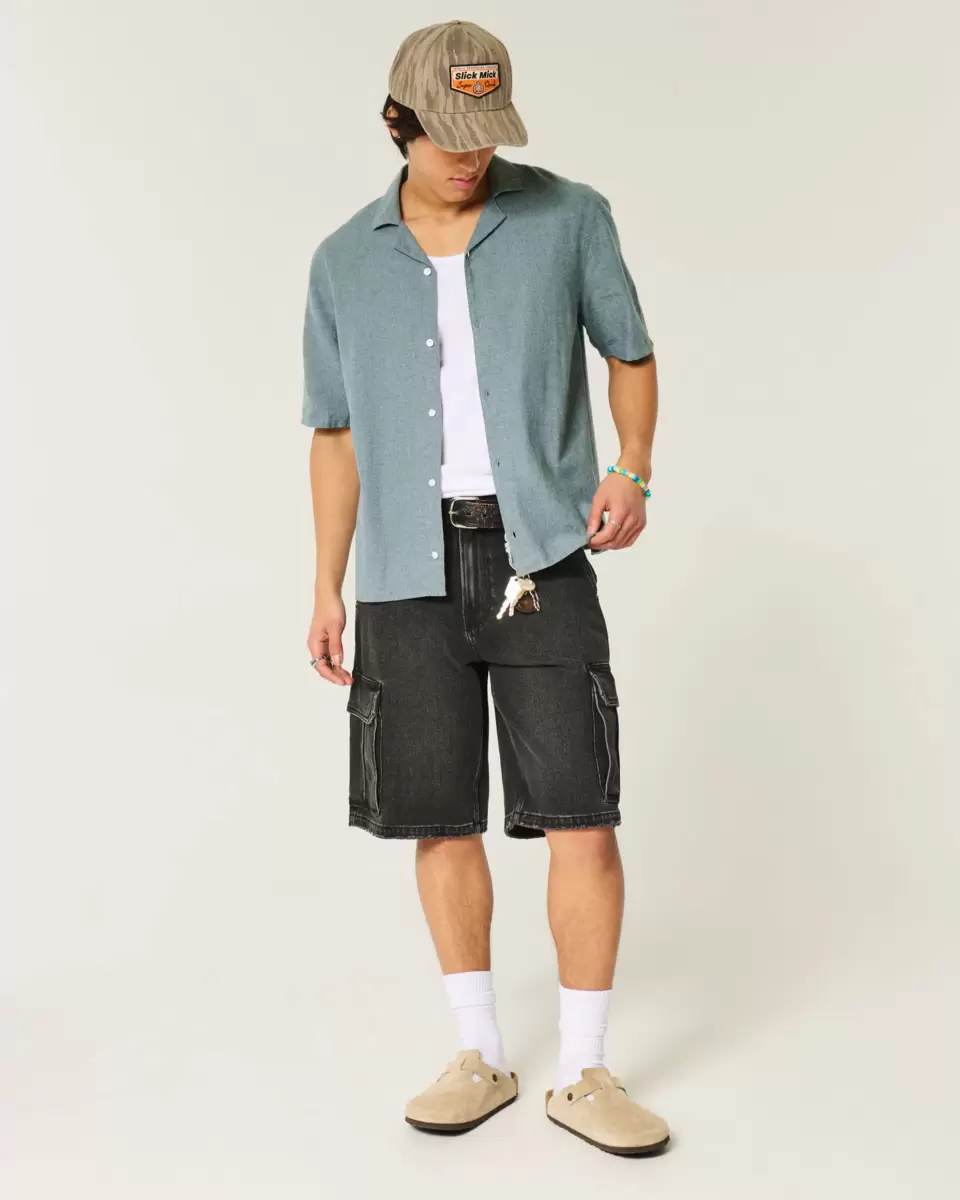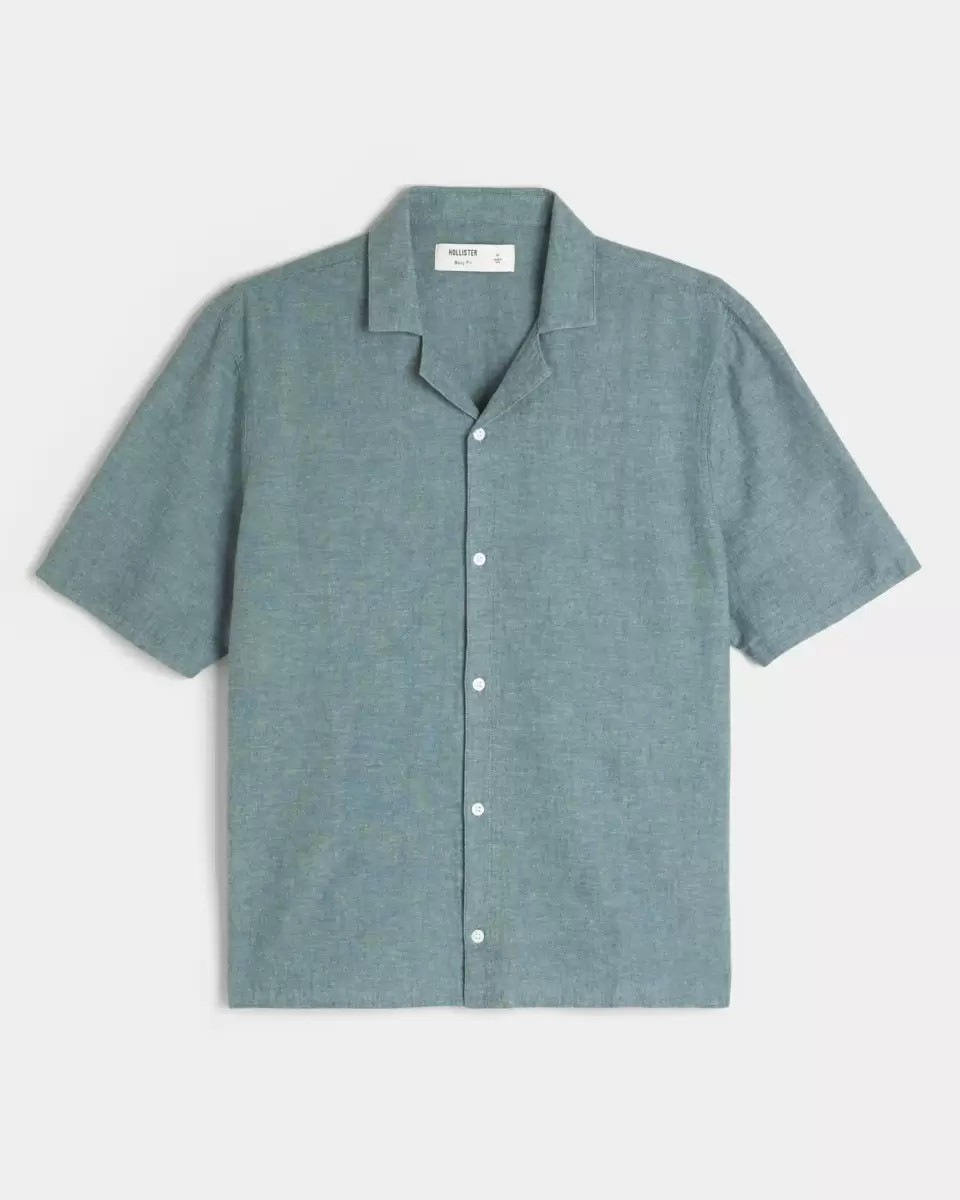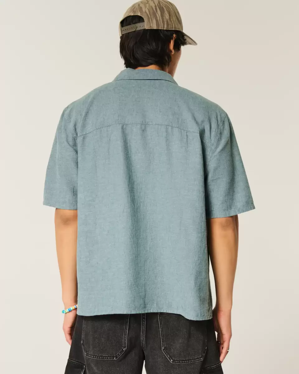 A classic short-sleeve shirt in a soft linen blend. Button closure, collar. Boxy Fit. Imported.