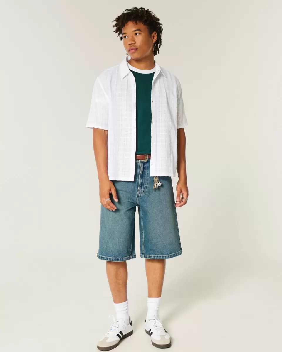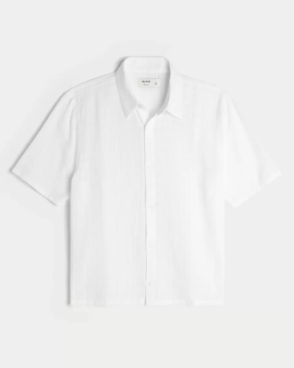 A classic, comfortable shirt with short sleeves and a textured pattern. Collar, full button closure. Boxy Fit. Imported.