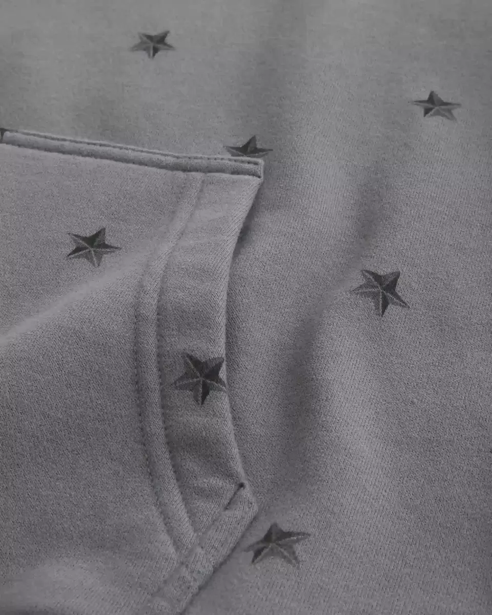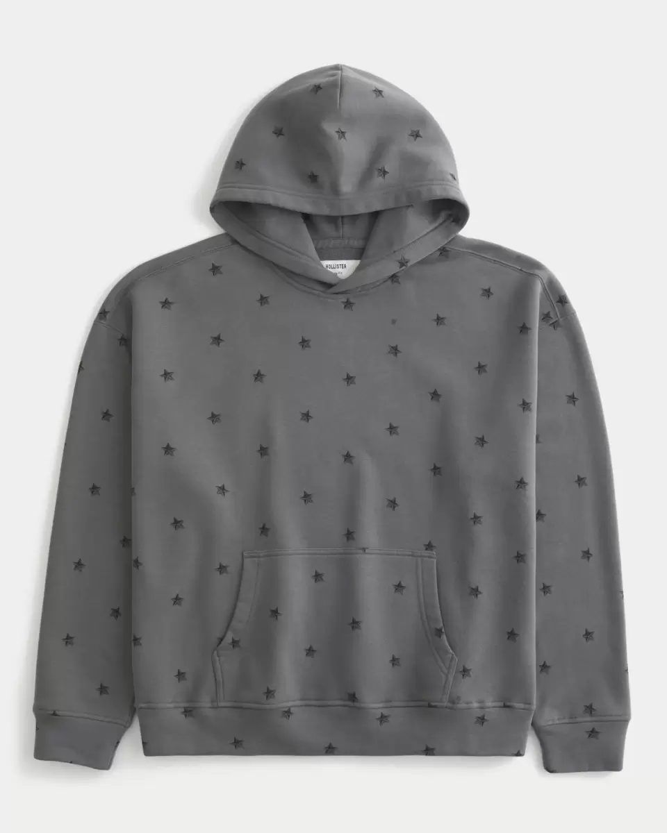 A super soft fleece hoodie featuring an all-over star pattern. Hood, front pouch pocket, long sleeves. Boxy Fit. Imported.