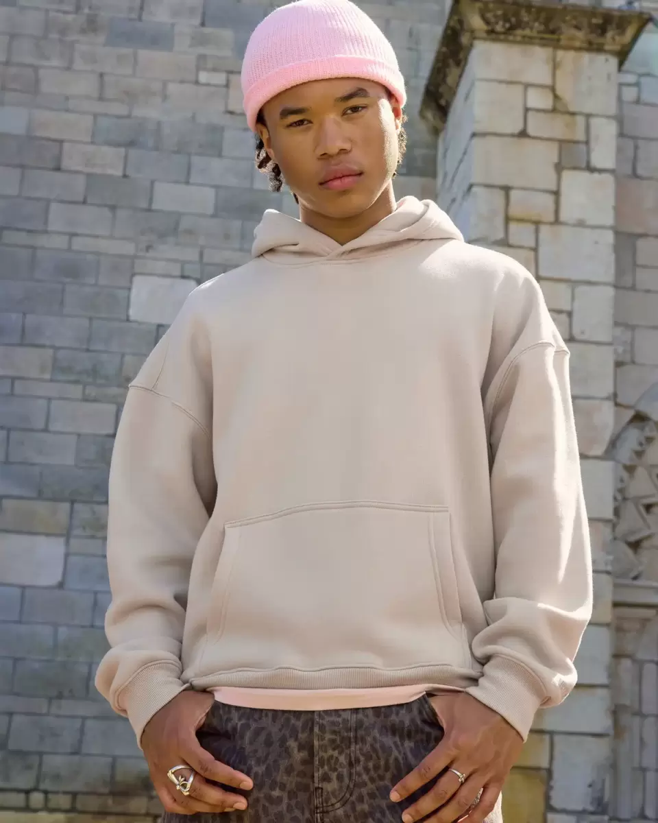This super soft fleece hoodie has long sleeves and a front pouch pocket. Washed look, hood. Boxy Fit. Imported.